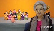 “한 코 한 코 뜨다 보면 인형을 갖고 놀던 어린 시절로 돌아간 기분이랍니다.” 뜨개 인형 작가인 정을섭 할머니(82)는 인형을 만들다 보면 마치 동심의 세계에 빠져드는 느낌이라고 말한다. 팔순이 넘은 나이에도 뜨개바늘을 놓을 수 없는 이유다. 정 할머니가 뜨개 인형 만들기를 시작한 것은 약 10년 전. 공무원과 춘천 YWCA 총무 등을 거쳐 음식점을 운영하다 그만두고 평소 좋아하던 뜨개질을 즐기다가 어린 시절 좋아했던 인형이 떠올라 며칠이 걸려 인형 하나를 만든 것이 계기가 됐다. 이후 뜨개 인형 만들기는 정 할머니의 일상이 됐고 이제는 제작 시간도 단축돼 높이 20cm 미만의 인형 하나를 하루면 완성한다. 정 할머니가 꼽는 뜨개 인형의 매력은 공장에서 찍어 낸 천편일률적인 인형이 아닌 세상에 하나밖에 없는 인형이라는 점. 또 뜨개질한 옷에서 느낄 수 있는 따뜻함과 정을 뜨개 인형에서도 느낄 수 있다고 한다. 뜨개 인형을 정성 들여 만들다 보니 인형 하나하나가 마치 자식처럼 소중하게 느껴진다. 뜨개 인형을 돈을 받고 팔지 않고 손자, 손녀를 비롯해 주위 친한 사람들에게만 선물하는 이유다. 그들이 뜨개 인형을 받고 기뻐하는 모습에서 한없는 보람을 느낀다. “명절 때 아이들에게 뜨개 인형을 줬더니 너무 좋아하더라고요. 돈보다 훨씬 멋진 선물이라는 것을 그때 알았습니다.” 뜨개 인형 만들기는 건강에도 도움이 된다. 손을 쉴 새 없이 움직이고 머리 속으로 형태를 그리다 보면 치매가 예방되는 느낌이다. 실제 정 할머니는 공중파 TV의 건강 프로그램에 소개되기도 했다. 정 할머니는 최근 춘천시립도서관에서 ‘뜨개 인형의 춘천 나들이전’이라는 전시회를 열고 자신이 만든 뜨개 인형 70점을 선보였다. 정 할머니의 전시회는 2010년 지역 문화단체의 주선으로 한 카페에서 열린 이후 두 번째. 시립도서관이 책 축제를 열면서 부대 행사로 전시회를 제안했고, 정 할머니가 이를 수락했다. 정 할머니는 “취미 삼아 시작한 일이 내 인생에 큰 부분이 됐다”라며 “기회가 주어진다면 더 많은 인형을 준비해 세 번째 전시회도 열고 싶다”라고 말했다. 이인모 기자 imlee@donga.com}