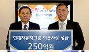 현대자동차그룹이 20일 시작된 사회복지공동모금회의 모금 캠페인 첫날 1호 기부자로 이웃돕기 성금 250억 원을 기탁했다. 이날 정의선 현대자동차 부회장은 서울 중구 사회복지공동모금회에서 허동수 사회복지공동모금회장에게 성금을 전달했다. 정 부회장은 “성금이 우리 사회 각계각층의 이웃 사랑을 더욱 활발히 이끌어내는 데 도움이 됐으면 한다”며 “내년에도 경영 환경이 쉽지 않을 거라 예상하지만 더 힘들어지는 이웃들을 기억하고 돌아보며 사회적 책임을 다할 것을 약속 드린다”고 말했다. 성금은 장애인, 학대 피해아동, 다문화가정 등 복지 사각지대에 놓인 소외된 이웃과 저소득층을 지원하는 데 활용된다. 이번 성금을 포함해 현대차는 2003년부터 총 1590억 원을 사회복지공동모금회에 기탁했다. LG그룹도 이날 사회복지공동모금회에 이웃돕기 성금 120억 원을 기탁했다. 성금 기탁과는 별도로 홀몸노인 및 소년소녀가장 등 소외된 이들을 지원하기 위한 생활필수품 지원, 주거환경 개선 등 다양한 기부 활동도 실시할 계획이다. 김영기 ㈜LG CSR팀 부사장은 이날 사회복지공동모금회를 방문해 “작은 정성이지만 어려움을 겪고 있는 이웃들에게 힘을 보태고 소외계층에 대한 사회적 관심도 높이는 계기가 되길 바란다”고 말했다.최예나 yena@donga.com 황태호 기자 taeho@donga.com}