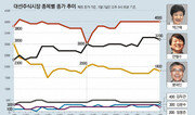 4·11총선 이후 대선주식시장에서는 새누리당 박근혜 비상대책위원장의 주가가 부동의 1위를 지키는 가운데 안철수 서울대 융합과학기술대학원장이 뒤를 쫓는 양상이다.동아일보와 종합편성TV 채널A가 리서치앤리서치(R&R)와 함께 진행 중인 ‘18대 대선주식시장(stock.randr.co.kr)’에 따르면 7일 현재 주요 대선주자의 주가는 박근혜 비대위원장 4000원, 안철수 원장 3200원, 문재인 민주통합당 상임고문 1800원이다. 이를 예상득표율로 환산하면 박 위원장 35%, 안 교수 29%, 문 고문 17%이라고 볼 수 있다.여권에선 김문수 경기지사, 정몽준 전 대표 등 비박(비박근혜)계 주자들의 잇단 대권 출마 선언에도 박 위원장의 독주가 계속되고 있다. 총선 전 3600원 정도를 유지하던 박 위원장의 주가는 총선 직후 4100원까지 올랐다. 이후 이명박 대통령의 최측근인 최시중 전 방송통신위원장과 박영준 전 지식경제부 차관의 거액 수수 의혹이 제기되며 하락하기도 했지만 이내 4000원을 회복했다.박 위원장은 3월 12일 대선주식시장 개장 이후 단 한 차례도 1위 자리를 내놓지 않고 있다.야권에선 4·11총선 이후 안철수 원장의 부상과 문재인 고문의 하락이 두드러졌다. 총선 과정에서는 ‘박근혜 대 문재인’의 경쟁 구도가 형성되면서 문 고문의 주가가 안 교수를 최대 1000원 이상 따돌리며 야권의 대표주자로 자리매김하는 듯했다. 하지만 총선 이후 안 원장은 문 고문을 3위로 밀어내고 그 격차를 벌리고 있다.안 원장은 여야의 악재가 터질 때마다 계단식의 상승세를 보이고 있다. 반면 총선 선거운동 기간 동안 3000원대를 웃돌던 문 고문은 총선 이후 한때 1500원까지 폭락하며 하향 곡선을 그리고 있다. 이 틈을 타서 안 원장의 주가는 2000원대 초반에서 3000원대 초반까지 빠른 속도로 올라가고 있다. 박 위원장과의 격차도 불과 800원이다.4·11총선 이후 야권의 잇단 악재는 박 위원장의 주가 순항과 안 원장의 몸값 상승을 견인하는 요인이 된 것으로 보인다. 박 위원장은 민주당의 ‘이해찬-박지원 담합’ 논란이 제기된 지난달 30일 이후, 안 원장은 통진당의 비례대표 부정 파문과 당권파의 비상식적 행태가 드러난 2일 이후 주가가 뛰었다.박 위원장은 총선 승리 직후 김형태 문대성 당선자 논란과 친박(친박근혜)계 내부의 알력 다툼, 대선 ‘경선 룰’을 둘러싼 공격 등 내부 악재에 맞닥뜨렸다. 하지만 야권의 극심한 내홍으로 여권 악재가 대부분 덮인 데다 반사이익까지 누리고 있다.한편 박 위원장에 대한 공세 수위를 높이고 있는 김문수 경기지사, 정몽준 전 대표 등 비박계 대선주자의 주가는 300원대에 머물러 있다. 정치행보를 넓히고 있는 김두관 경남지사와 유럽 5개국 순방을 마치고 돌아온 민주통합당 손학규 상임고문의 주가 역시 각각 400원과 100원으로 낮았다.손영일 기자 scud2007@donga.com 홍수영 기자 gaea@donga.com }
