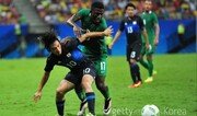 [동아닷컴]일본 올림픽 축구 대표팀이 경기 당일에 브라질에 도착한 나이지리아를 상대로 5실점하며 패했다.나이지리아와 일본의 조별예선 B조 1차전은 5일 오전 10시(이하 한국시각) 브라질 마나우스 아마조니아 아레나에서 열렸다.나이지리아 올림픽 대표팀은 협회의 운영 미숙과 자금난 등의 문제로 비행기 티켓 일정에 3번이나 차질을 빚었다. 결국 나이지리아 대표팀은 미국의 델타 항공의 전세기편으로 경기 6시간 전에야 브라질에 도착해 간신히 경기에 나섰다.컨디션 난조 우려가 있었지만 나이지리아는 폭발적인 공격력으로 이런 우려를 씻었다. 전반 7분 나이지리아의 사디크 우마르가 선제골을 터트리며 앞서가자 2분 뒤 일본의 코로키 신조의 동점골이 나왔다.다시 2분 뒤 나이지리아의 오그헤나케로 에테보가 득점하며 2-1로 점수 차를 벌렸고 그로부터 2분 뒤 일본의 미나미노 타쿠미가 2-2 동점골을 터트리며 다시 승부의 균형을 맞췄다.하지만 나이지리아는 전반 42분 에테보가 한 골을 추가하면서 3-2 리드로 전반을 마무리했다. 후반 들어 나이지리아의 공격이 더욱 매서워졌다. 나이지리아의 에테보는 후반 9분 해트트릭을 달성하더니 후반 21분 한 골을 더 추가하며 4득점 째를 기록, 앞서 피지 전에서 해트트릭을 기록한 류승우를 제치고 대회 득점 선두로 올라섰다.이후 일본의 아사노 타쿠마가 득점하며 점수 차를 좁힌 일본은 후반 추가 시간 무사시 스즈키의 골로 한 골 차까지 따라잡았지만 시간이 부족했다. 나이지리아는 지난 대회 4강 팀 일본을 완파하고 첫 승을 거뒀다. 동아닷컴 송치훈 기자 sch53@donga.com}
