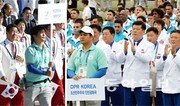 “선수들이 개별 훈련에 집중하고 있어서 본부 임원과 지원 스태프 위주로 나왔어요.” 인천 아시아경기에서 한국 선수단 본부 임원으로 나선 박명규 대한체육회 홍보실장은 18일 오후 인천 남동구 구월아시아드 선수촌 국기광장에서 열린 한국 선수단 공식 입촌식에서 양해를 구했다. 마카오, 아랍에미리트, 오만, 캄보디아, 홍콩 등 5개국 선수단과 공동으로 진행된 입촌식에는 박순호 한국 선수단장과 부단장인 최종삼 태릉선수촌장 등 본부 임원들을 중심으로 43명이 참석했다. 당초 박태환(수영), 이용대(배드민턴), 김재범(유도), 남현희 신아람 김지연(이상 펜싱) 등 대표팀 스타들이 참석할 예정이라고 공지됐으나, 이날 선수들이 경기 날짜가 다가오면서 훈련에 전념하느라 입촌식에는 참가하지 않았다. 하지만 흰색 상의와 붉은색 하의 및 갈색 구두로 멋을 낸 한국 선수단은 대회 주제가에 리듬을 맞추면서 국내외 취재진들을 위해 적극적으로 촬영과 인터뷰에 응하는 등 입촌식 분위기를 끌어올렸다. 박순호 선수단장은 “세 번째로 한국에서 개최되는 아시아경기가 국민들의 마음에 활력소가 됐으면 한다”며 “한국 선수단 경기를 보고 국민들이 쾌감을 얻기를 바란다”고 입촌 소감을 밝혔다. 박 단장은 북측 선수단에 대해서도 “만족할 만한 성적을 거둬 좋은 기억을 가져갔으면 한다”며 여유 넘치는 응원의 메시지를 보냈다. 앞서 치러진 북한 선수단의 입촌식은 사뭇 딱딱한 분위기였다. 북한은 이날 오전 10시 중국, 싱가포르, 태국, 예멘, 방글라데시와 공동 입촌식을 치렀다. 김병식 북한 선수단장을 포함한 임원들과 축구, 역도 등의 선수 및 감독 30여 명이 참석했다. 북한 선수단은 식전행사인 비보이 공연이 펼쳐질 때도 무표정한 얼굴로 지켜보기만 했다. 박수를 치거나 휴대전화 카메라로 촬영을 하는 다른 국가 선수들과 대조적이었다. 앞쪽에 선 북한 여자 선수들은 서로 잡담을 하거나 취재진의 요청에 웃으며 손을 흔들기도 했지만 뒤쪽의 남자 선수들은 굳은 표정이었다. 북한의 국기가 게양될 때 작은 소리로 국가를 부른 것이 전부였다. 취재진의 질문에도 답변을 피했다. 여자축구 선수들은 우승할 자신 있느냐는 질문에 단호하게 “네”라고 답했지만 더이상 입을 열지 않았다. 식사나 숙소는 편하냐는 물음에도 고개만 살짝 끄덕였다. 북한 선수단에 각국 취재진의 관심이 집중되자 북한 취재진이 나서서 자제시키기도 했다. 김 단장은 대회 목표에 대해 “경기를 해보기 전까지는 모르겠다. 선수단이 경기 준비를 잘해 왔다”며 웃었다. 북한 선수단은 몰려드는 취재진을 피해 가장 먼저 자리를 떠났다. 인천=유재영 elegant@donga.com·주애진 기자}