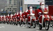 산타클로스 복장을 한 집배원들이 ‘2010 산타 집배원 발대식’을 마치고 13일 서울 중구 충무로1가 서울중앙우체국 앞에서 오토바이로 시가행진을 하고 있다. 우정사업본부는 31일까지 서울중앙우체국, 부산우체국, 수원우체국 등 전국 9개 도시마다 주요 우체국 1곳에서 ‘사랑의 산타우체국’을 운영한다. 이 기간 우체국 안팎을 산타마을로 꾸미고 직원들이 산타 복장을 한 후 시민들을 맞는다. 집배원도 산타 복장을 하고 편지와 소포를 배달한다. 홍진환 기자 jean@donga.com}