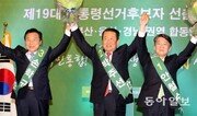 4일 국민의당 대선 후보로 확정된 안철수 전 대표가 “낡은 과거의 틀을 부숴 버리고 미래를 여는 첫 번째 대통령이 되겠다”며 쩌렁쩌렁한 목소리로 수락 연설을 하자 지지자 4000여 명이 ‘안철수’를 연호했다. 행사가 열린 대전 한밭체육관은 안철수 열풍 재현을 기대하는 열기로 가득했다. 안 전 대표가 그간 전국 순회 경선에서 연승을 거둬 이날 경선 주목도는 그리 높지 않았다. 그런데도 350여 명의 내외신 취재진이 몰려 국민의당은 프레스 비표를 추가로 제작해야 했다. 국내에 체류하는 주한 미국대사관 그레고리 트룬츠 서기관, 호주대사관과 일본대사관 외빈들도 참석했다. 오후 7시 15분경 장병완 당 선거관리위원장이 “19대 대선 후보자로 안철수 후보가 선출됐음을 선포합니다”라고 외치자 장내는 박수와 환호가 넘쳐났다. 2위 손학규 전 대표는 안 전 대표의 손을 먼저 잡으며 축하를 건넸다. 안 전 대표는 “오늘 이 순간 겸허한 마음과 엄숙한 각오로 국민의당 19대 대통령 후보직을 수락합니다. 대한민국의 미래를 여는 담대한 도전에 나섭니다”라고 후보직을 수락했다. 이어 미국 인권운동가 마틴 루서 킹 목사가 세상을 떠난 날이 이날인 점을 상기시키며 “나에게는 꿈이 있습니다. 청년들, 여성들, 온 국민들 꿈꾸게 하겠습니다. 저 안철수, 대한민국 다시 꿈꾸게 하겠습니다”라고 강조했다. 문재인 전 더불어민주당 대표를 향해 안 전 대표는 “계파 패권주의는 말 잘 듣고, 줄 잘 서는 사람을 쓴다”며 “저는 대한민국 최고의 인재들 널리 찾아 쓰겠다. 편 가르기 정권이 아니라 실력 위주의 드림팀을 만들겠다”고 말했다. 다음은 안 전 대표가 이날 후보로 확정된 후 언론과 가진 일문일답. ―손학규 전 대표와 박주선 부의장은 어떤 역할을 주려고 하나. “당과 상의하고, 두 후보님과도 긴밀하게 상의해 부탁하려고 한다.” ―문 전 대표와 지지율 격차가 있는데 이길 방안이 있나. “시대정신과 역사의 흐름을 믿는다. 정권 교체는 이미 확정돼 있다. 이미 구도는 정권 교체로 정해졌으니 두 사람의 인물과 정책 대결이 될 것이다. 남은 30여 일간 조선왕조 500년간 일어난 일이 다 일어날 수 있다. 기대해도 좋다.” ―대통령이 되면 꼭 해내겠다는 대표 공약이 뭔가. “교육 공약이다. 교육이 바뀌지 않으면 창의적 인재를 기르지 못하고 중장년층도 4차 산업혁명에 대처하기 어렵다. 저는 (교육 제도를) 꼭 바꿀 수 있는 교육 대통령이 되고 싶다.” ―누가 정권을 잡든 개헌 논의가 나올 가능성이 있는데 찬성하나. “반드시 다음 정부에서 개헌해야 한다고 본다. 이전 정부의 불행은 개인 문제가 아니라 제도의 문제다. 다음 대통령은 개헌해야 한다.” ―박근혜 전 대통령 사면 논란에 대한 입장은…. “아직 재판이 시작되지도 않았는데 너무 앞서 나간다. 사면권을 너무 남용해서는 안 된다는 말씀을 드린다.” ―보수표를 의식해서 보수인 척한다는 지적이 있는데…. “비판을 위한 비판일 뿐이다. 정치하면서 배운 게 상대방이 비판하면 제가 올바른 방향으로 가고 있다는 것이라는 점이다.” ―문 전 대표와 함께할 수 없는 가장 큰 이유는…. “누구를 반대하기 위해 출마한 게 아니다. 제가 가진 비전과 리더십이 (문 전 대표보다) 더 낫다고 보고 출마했다.” ―경선에서 목소리가 화제가 됐는데…. “제 나름대로 노력해서 바꿨다. 자기 자신도 못 바꾸는 사람이 어떻게 국가를 바꾸겠나.”대전=장관석 기자 jks@donga.com}