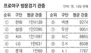 프로야구 한화의 방문경기 때는 상대팀 구장에 ‘환영’ 플래카드라도 걸릴지 모른다. 한화가 다른 팀 구장을 찾으면 해당 경기장의 관중 동원이 잘되기 때문이다. 14일 현재 한화의 안방인 대전구장(관중 수용 규모 1만3000명)을 찾은 평균 관중은 9255명이고, 한화가 다른 팀 구장에서 방문경기를 했을 때 평균 관중은 1만4139명이다. 프로야구 흥행 팀에는 평균 관중 수 그 이상의 무엇이 있다. 야구팬들이 흔히 보는 평균 관중 수는 안방 구장 관중 수를 뜻한다. 자연스레 구장이 크면 평균 관중도 많고, 작으면 반대인 경우가 많다. 방문 팀 기준으로 평균을 내 보면 사정이 다르다. 방문경기까지 따라다니는 열혈 팬도 필요하고, 안방에서도 ‘아, 그 팀이 온다니 야구장 한번 가 봐야겠다’고 마음먹은 팬이 많아야 한다. 그래서 ‘전국구 팀’이 어디인지 확인하려면 방문경기 관중 수도 함께 봐야 한다. 한화의 안방 구장 평균 관중은 지난해 7424명에서 올해 9255명으로 24.7% 늘었다. 방문경기 관중 상승 폭은 이보다 큰 34.3%다. 관중 동원 순위에서도 지난해는 평균 1만532명으로 6위였지만 올해는 1위로 올라섰다. 서울 목동구장(1만600명 수용 규모)을 안방으로 사용하는 넥센이 평균 관중은 최하위(7159명)이지만 방문경기에서는 6위(9274명)로 올라가는 것도 주목할 만한 점이다.황규인 기자 kini@donga.com}