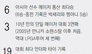 트로피를 안고 손가락 세 개를 펴 보인 그의 얼굴에 환한 미소가 번졌다. 올 시즌 미국여자프로골프(LPGA)투어 두 번째 메이저 대회인 KPMG 위민스 PGA챔피언십에서 우승한 박인비(27·KB금융그룹)였다. 박인비는 15일 미국 뉴욕 주 해리슨의 웨스트체스터CC(파73)에서 끝난 이 대회에서 정상에 올라 1937~1939년 패티 버그(미국·타이틀홀더스 챔피언십), 2003~2005년 안니카 소렌스탐(스웨덴·LPGA챔피언십)에 이어 세 번째로 LPGA투어 메이저 대회 3연패를 달성했다. 10년 만의 대기록을 세운 박인비는 “꿈이 현실이 됐다. 버그, 소렌스탐과 같은 전설들 옆에 내 이름을 새기게 돼 영광이다. 믿어지지 않아 뭐라 표현해야 할지 모르겠다”고 감격스러워했다. 박인비는 이번 대회에서 1라운드 17번 홀부터 4라운드 마지막 홀까지 56홀 연속 노보기 플레이를 펼쳤다. 올 시즌 박인비에게 2차례나 뼈아픈 패배를 안겼던 김세영(22·미래에셋)도 이날은 박인비의 견고한 플레이를 뚫지 못했다. 박인비는 이 대회 역대 최다 언더파 타이 기록인 최종 합계 19언더파 273타를 적어내며 5타차 완승을 거뒀다. 뉴욕타임즈는 ‘해마다 대회의 이름과 장소가 바뀌었어도 챔피언은 달라지지 않았다’고 전했다. 박인비는 개인 통산 6번째 메이저 타이틀을 안으며 박세리, 쩡야니(이상 5승)의 아시아 선수 최다 우승 기록도 갈아 치웠다. 또 통산 15승째이자 올 시즌 처음으로 3승째를 거두며 상금 52만5000 달러(약 5억9000만 원)를 받아 상금 부문에서도 선두에 나섰다. 올해의 선수 포인트 역시 1위에 올랐다. 세계 랭킹에서도 뉴질랜드 교포 리디아 고를 제치고 4개월 만에 1위 자리에 복귀했다.김종석기자 kjs0123@donga.com}