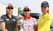 “언니 오랜만이에요. 잘들 지냈죠.?”(김효주) “그래. 어제 온 거니. 홀인원 했던 데 기운 좀 받아보자. 호호.”(이정민, 전인지) 두 달 만에 한 자리에 모인 세 명은 환한 미소와 함께 한번 열린 입이 닫힐 줄 몰랐다. 18일 인천 베어즈베스트골프장에서 개막하는 한국여자프로골프(KLPGA)투어 한국여자오픈 출전을 앞두고 17일 프로암대회에서 만난 김효주(20·롯데), 이정민(23·비씨카드), 전인지(21·진로하이트)였다. 미국여자프로골프(LPGA)투어에서 뛰고 있던 김효주는 16일 귀국해 고려대 선후배 사이로 평소 친하게 지내던 이정민, 전인지와 반가운 만남의 시간을 가졌다. 지난해 KLPGA투어를 평정했던 김효주가 떠난 올 시즌 이정민과 전인지는 최근 5개 대회에서 우승을 나눠가지며 나란히 3승씩으로 다승 공동 선두에 나섰다. 김효주는 “주위의 기대가 큰 것 같아 부담이 된다. 시차 적응에 도움이 될까 싶어 귀국하는 비행기 안에서 계속 안자다 막판에 너무 졸려 30분 동안 눈을 붙였다”며 웃었다. 김효주는 직전 대회였던 위민스 PGA챔피언십 마지막 날 프로 데뷔 후 첫 홀인원을 낚았다. 전인지도 지난달 두산 매치플레이챔피언십 결승에서 홀인원에 힘입어 우승 트로피까지 안았다. 김효주는 “지난해 제주 대회에서 동반자였던 (박)인비 언니 홀인원을 지켜본 뒤 일이 잘 풀렸다. 우리 모두 좋은 일 많았으면 좋겠다”고 했다. 김효주와는 대원외고 동문인 이정민은 “지난 1주일 동안 대회 출전 없이 잠도 푹 자고 학교도 가면서 재충전했다. 효주가 오랜 만에 한국 대회에 나와 반갑다. 동생들과 함께 즐기는 경기를 하고 싶다”고 덕담을 했다. 지난해 하이트진로 챔피언십에서 김효주에게 연장전 끝에 패했던 이정민은 “효주와 리턴 매치가 이뤄진다면 기꺼이 즐기겠다”고 말했다. 전인지는 “효주와 같은 조가 돼 기대가 된다. 정민이 언니와는 우승하면 아이스크림을 사주는 내기를 하고 있다. 요즘 둘 다 아이스크림 먹을 일이 많아졌다”고 했다. 이번 대회는 코스 전장이 길고 코스 세팅도 까다롭다. 2013년 이 대회에서 첫 승을 거뒀던 전인지는 “러프가 길고 그린이 단단해 신중하게 플레이해야 할 것 같다”고 말했다. 이 대회 우승이 없는 이정민은 “지난해 아쉬운 점(4위로 마감)이 있었기에 간절한 마음이 있다”고 속내를 드러냈다. 메이저 타이틀이 걸린 이 대회는 총상금 7억 원에 우승 상금만도 2억 원에 이른다. 전인지가 우승하면 상금 7억 원을 돌파하며 지난해 김효주가 작성한 시즌 최다 상금 기록(12억 원)을 넘볼 수 있다. 현재 상금 2위인 이정민이 생애 첫 내셔널 타이틀을 안으면 상금 선두에 복귀한다. 김효주는 2001년 강수연 이후 14년 만의 대회 2연패를 노린다. 웃음 속에 결전에 들어간 세 선수는 어떤 결과를 얻을까.김종석 기자 kjs0123@donga.com}
