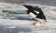 한강 어느 귀퉁이, 까치가 식사 중입니다. 산 벌레를 멋지게 잡아먹고 싶지만 그러지 못합니다. 킬리만자로의 표범처럼 고고하고 싶지만 그러지 못합니다. ‘썩은 고기를 찾아 산기슭을 어슬렁거리는’ 하이에나처럼 말이죠. 어쩌겠어요. 강물이 녹고 봄이 올 때까지 살아야 하는 걸요. 생존에 비겁함이란 없습니다. 안철민 기자 acm08@donga.com}