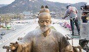 9일 오전 서울 종로구 광화문광장에서 서울시 관계자들이 세종대왕 동상을 세척하고 있다.안철민 기자 acm08@donga.com}