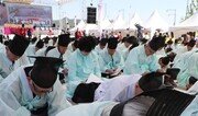 6일 오전 서울 광화문광장에서 열린 ‘제18회 대한민국 서당문화한마당’ 한시대회에서 백발의 참가자가 한시를 짓고 있다. 전북 남원시와 한국전통서당문화진흥회 주최 서당문화한마당은 그동안 남원에서 열다가 지난해부터 광화문광장에서 열고 있다. 안철민 기자 acm08@donga.com}