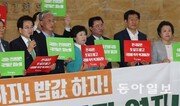 정동영 대표(가운데 마이크 잡은 사람)를 비롯한 민주평화당 의원들이 3일 서울 여의도 국회 로텐더홀에서 의원총회를 열고 6월 임시국회 개회를 촉구하고 있다. 안철민 기자 acm08@donga.com}