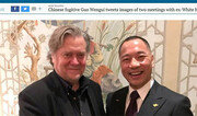 미국에 도피해 중국 지도부의 부패를 폭로하고 있는 중국 부동산 재벌 궈원구이(郭文貴) 정취안(政泉)홀딩스 회장이 스티브 배넌 전 백악관 수석전략가와 최근 1주일 사이 두 차례 만난 뒤 관련 사진을 공개해 배경이 주목된다. 배넌은 8월 물러나기 전까지 도널드 트럼프 미 대통령의 ‘오른팔’로 불렸던 핵심 측근이다. 12일 홍콩 밍(明)보에 따르면 궈 회장은 10일 배넌과 함께 찍은 사진 4장과 함께 회동 사실을 공개했다. 궈 씨는 자신의 트위터에 “5일 워싱턴 내셔널프레스클럽 기자회견 뒤 배넌과 점심을 했고, 10일에는 집으로 찾아온 배넌 일행과 3시간 반 동안 저녁 식사를 했다”고 적었다. 궈 회장은 또 “지난 반년 동안 줄곧 친구를 통해 배넌과 연락했다”고 밝혀 최소 6개월 이상 지속적으로 만나 왔음을 시사했다. 한 트위터 평론가는 “이는 궈 회장의 중국 지도부 비리 폭로에 미 정부가 개입했음을 의미한다”고 분석했다. 트럼프 대통령의 대선 참모였던 로저 스톤은 유튜브 동영상에서 “궈원구이는 미국이 중국으로 하여금 대북 압력을 넣도록 하는 지렛대와 같은 존재”라고 말했다. 미국이 궈 회장이 가진 지도부 비리를 활용해 중국이 대북제재에 동참하도록 했을 것이라는 뜻이다. 이와 관련해 밍보는 궈 회장이 평소 “중국인의 일은 중국인이 해결하는 것이 맞지만 미 정부가 일찌감치 개입하는 것도 좋은 일”이라고 말해 왔다고 전했다. 중국은 시진핑(習近平) 국가주석의 측근인 왕치산(王岐山) 중앙기율검사위원회 서기의 비리 혐의를 폭로한 궈 회장을 4월 인터폴에 요청해 적색 수배령을 내렸으며, 미국 측에도 줄곧 송환을 요구하고 있다. 배넌은 지난달 중국 베이징(北京)을 방문해 중난하이(中南海)에서 왕 서기와 만나 1시 반 동안 대화를 나눴다.구자룡 기자 bonhong@donga.com}