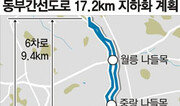 서울 노원구 상계동과 강남구 대치동을 신호등 없이 바로 잇는 17.2km 길이의 대심도(大深度) 도로가 건설된다. 대심도 도로는 토지 보상비 등을 최소화하기 위해 지하에 건설된 각종 시설물을 피해 통상 지하 40m 이상 깊이로 건설되는 도로를 뜻한다. 서울시는 동부간선도로 일부 구간을 지하화하고 군자∼대치 구간 도로를 신설하는 사업의 세부 노선과 시행 시기, 추진 방식 등의 추진계획을 내년 말까지 수립하기로 하고 관련 용역 발주 공고를 냈다고 18일 밝혔다. 이 사업은 동부간선도로 당현4교∼군자교 9.4km 구간 왕복 6차로를 지하도로로 만들고, 군자∼대치 7.8km 구간엔 영동대로 지하를 따라 왕복 4차로 도로를 신설해 강남북을 연결하는 것이다. 군자와 영동대교 남단은 한강 지하를 통과하는 도로전용 터널을 신설해 연결하게 된다. 시 관계자는 “나들목 위치는 확정되지 않았으나 동부간선도로 지하화 구간에는 하계 월릉 중랑 군자 나들목을 만들고, 강남에는 삼성과 대치 나들목을 만들 계획”이라고 밝혔다. 시는 동부간선도로가 지하화되면 교통혼잡비용과 환경오염비용 등 사회적 비용이 3400억 원 감소할 것으로 보고 있다. 조종엽 기자 jjj@donga.com}