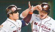 김회성의, 김회성에 의한, 김회성을 위한 주말이었다. 프로야구 한화 김회성(30)은 5, 6일 경기에서 연속해 3점 홈런을 터뜨리며 팀의 2연승을 이끌었다. 6일 경기서는 1점 홈런도 하나 추가하며 자신의 한 시즌 개인 최다 홈런 기록을 16개로 늘렸다. 이전까지 통산 홈런(8개)의 2배에 해당하는 숫자다. 김회성은 일단 공을 맞추기만 하면 장타를 치지만 맞추는 게 안 되던 타자였다. 2009년 데뷔 이후 1군 무대서 때려낸 안타는 44개. 이 중 딱 절반인 22개가 2루타 이상이었다. 반면 통산 타율은 0.188이 전부였다. 올해도 비슷했다. 4일까지 안타 42개 중 24개(57.1%)가 장타였지만 타율은 0.205에 머물러 있었다. 그래도 김회성이 방망이에 공을 세 번 맞추는 것만으로 한화가 주말 2연전을 싹쓸이하기에 충분했다. 김회성은 5일 경기 때는 2-1로 쫓긴 3회말 3점 홈런을 터뜨렸고, 6일에는 2회 선제 3점포를 터뜨린 데 이어 4-3으로 추격당한 7회에도 1점 홈런을 날리며 이날 선발 김민우(20)에게 데뷔 첫 승을 선물했다. 이로써 한화는 2008년 이후 7년 만에 60승(64패) 고지 점령에 성공했다. 전날까지 롯데와 승패 기록이 똑같았기 때문에 한 경기만 패해도 공동 5위 자리를 내줘야했던 상황에서 김회성의 방망이가 빛을 발한 것이다. 김회성은 “최근에 타격할 때 타이밍이 늦었는데 타격 훈련 때 감독님께서 손하고 허리 동작이 더 빨리 나올 수 있도록 지도해주신 게 큰 도움이 됐다”고 말했다. 한편 막내구단 kt는 5일 수원 경기에서 NC를 10-2로 꺾고 시즌 45승(78패)을 기록하며 한 시즌 100패 위기에서 벗어났다. 올 시즌은 팀당 144경기를 치르기 때문에 이제 전패해도 99패에서 멈추게 된다. 6일 경기서 kt는 NC에 0-7 완패를 당했다. 넥센은 5일 김영민(28)의 데뷔 후 첫 완봉승을 앞세워 창단 최다 기록인 8연승을 달렸지만 6일 경기서 패하며 3위 추격에 실패했다. KIA와 삼성도 대구에서 열린 주말 2연전을 1승 1패로 나눠 가졌다.황규인 기자 kini@donga.com}