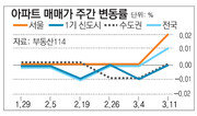 지난주 서울 아파트의 평균 매매가격은 전주보다 0.02% 상승했다. 서울 재건축 아파트의 평균 매매가는 같은 기간 0.11% 올라 서울 아파트값을 끌어올렸다. 13일 부동산114에 따르면 지난주 서울 아파트 평균 매매가는 10주간의 보합세를 끝내고 전주보다 0.02% 올랐다. 서울 아파트 평균 매매가는 지난해 12월 25일부터 이달 4일까지 계속 0.00%를 유지했다. 지역별로는 강남구(0.15%), 마포·은평구(0.05%), 구로·성동구(0.04%) 순으로 매매가 상승률이 높았다. 지난주 서울 재건축 아파트 평균 매매가는 전주보다 0.11% 올라 상승률이 두드러졌다. 재건축 외 일반 아파트 평균 매매가는 같은 기간 0.01% 오르는 데 그쳤다. 지난주 서울 아파트 전세금은 전주보다 0.06% 올랐다. 성북구(0.25%), 중구(0.24%), 동대문구(0.21%), 마포구(0.17%) 순으로 상승폭이 컸다. 신도시와 수도권 아파트 전세금은 같은 기간 각각 0.02%, 0.03% 올랐다. 이는 전주와 비슷한 수준으로 오른 것이다.조은아 기자 achim@donga.com}