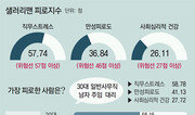 한국 직장인들이 직장생활을 하며 느끼는 피로도는 연령, 직급, 연차를 막론하고 심각한 수준인 것으로 나타났다. 동아일보 탐사취재팀과 대한만성피로학회가 이달 14∼20일 직장인 1235명(남성 790명, 여성 445명)을 대상으로 피로도 측정 설문조사를 한 결과 3가지 평가지표 중 ‘직무 스트레스’ 정도는 위험선(57점 이상)을 넘은 응답자가 절반이 넘는 692명(56.0%)에 달했고, 전체 평균치도 57.74점으로 위험선을 초과했다. ‘사회심리적 건강’ 정도 역시 위험선(27점 이상)을 넘은 응답자가 절반에 육박하는 592명(47.9%)이었고, 평균치도 위험선에 근접한 26.11점이었다. ‘만성피로도’는 위험선(46점 이상)을 넘은 응답자가 300명(24.3%)이었고, 평균치는 36.84점이었다. 3가지 지표 모두 위험선을 넘은 ‘고위험군’은 6명에 1명꼴인 208명(16.8%)으로 나타났다. 연령과 직급별로 ‘대한민국에서 가장 피곤한 직장인’은 30대 남자 일반사무직 주임·대리였다. 이들은 만성피로도 41.13점, 직무 스트레스 58.78점으로 다른 연령·직급보다 스트레스 강도가 훨씬 높다고 응답했다. 직무 스트레스 발생 원인을 △직무요구 △직장 내 갈등관계 △직장에서의 조직체계와 인적자원 관리 등으로 나눠서 살펴보니 40대 과장·차장은 직무요구 부담(27.79점)이 사원(23.25점)이나 부장(23.63점)에 비해 훨씬 높았다. 전문가들이 ‘고위험군’으로 분류한 208명 중에는 입사 1∼5년 차(31.7%)와 1년 미만(14.4%)이 합쳐서 절반 가까이 됐다. 설문 응답자들의 연차 및 직급별 분포가 고른데도, 고위험군에 젊은 직장인이 많이 포함돼 있어 직무수행 방식이나 직장문화에 대한 세대 간 인식 차가 크다는 지적이 나온다. 이경묵 서울대 경영학과 교수는 “근면정신을 발휘해 ‘한강의 기적’을 이뤘다는 우리 사회의 자부심은 여전하지만 효율적인 근무체제를 갖추거나 경직된 직장문화를 고치는 데는 소홀했다”고 지적했다. 윤인진 고려대 사회학과 교수는 “우리 사회는 그간 고성장의 패러다임을 고집해왔고 인식과 사회 제도가 거기에 맞게 짜였다”며 “저성장 시대에 들어오자 이것이 우리 생활방식과 맞지 않아 혼란은 앞으로 더욱 가중될 것”이라고 예측했다. 김재형 monami@donga.com·노지현 기자}