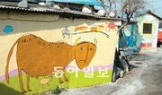 울산 남구 야음동 신화마을 174. 도심 속 오지로 방치됐던 이곳이 예술마을로 거듭났다. 마을 골목길 담벽에는 각종 벽화가, 지붕 위에는 익살스러운 조형물로 가득하다. ○ “작가들에게도 인기” 야트막한 언덕에 있는 신화마을은 골목 하나를 사이에 두고 양쪽으로 집들이 길게 늘어서 있다. 성인 두세 사람이 나란히 걸으면 좁을 정도인 골목길이 최근 ‘노천 미술관’으로 재탄생했다. 휴일인 26일 찾아간 신화마을에는 카메라를 든 작가와 학생 20여 명이 골목을 누비며 사진을 촬영하기에 여념이 없었다. 마을주민들도 이들 외지인이 싫지만은 않은 표정이었다. 가장 먼저 손님을 맞는 것은 마을 입구 주택 지붕 위의 귀신고래. ‘한국 고래잡이 전진기지’였던 장생포와 인접한 데다 마을주민 대부분이 상업포경 금지(1986년) 직전까지 포경업에 종사했기 때문에 귀신고래 모형이 설치돼 있다. 귀신고래와 함께 토끼 등 다양한 형태의 동물 조형물이 친근감을 더해주고 있다. 담장에는 다양한 테마 벽화가 그려져 있다. 동화의 골목, 동심의 골목, 시(詩)의 골목, 음악의 골목, 민화의 골목, ‘창밖 너머로 굽어보는 개’ ‘집에서 슬그머니 도망쳐 나오려는 고양이’ 등 옛날 시골마을을 연상하는 익살스러운 작품 30여 점이 그려져 있다. 골목길을 300여 m 가면 나타나는 마을 정상에는 2010년 울산전국환경미술제에 출품된 최평곤 작가의 대나무 조형물 ‘신화마을 지킴이’가 마을을 굽어보고 있다. 주민 이모 씨(65)는 “골목길에 산뜻한 벽화가 그려진 뒤 우중충하던 마을이 한층 밝아졌고 노인이 대부분인 마을에 젊은이가 많이 찾아 활력이 넘치고 있다”고 말했다.○ 미술마을 프로젝트로 추진 신화마을은 1960년대 울산공업단지 조성으로 공단 용지로 편입된 매암동 주민들이 이주하면서 생긴 마을이다. 186가구 380여 명의 주민 대부분이 60세 이상 노인인 데다 건물이 낡아 울산에서 대표적인 슬럼가로 불리던 곳이다. 이 신화마을은 문화체육관광부와 울산 남구청이 공동으로 시행한 ‘2010 미술마을 프로젝트’에 힘입어 11월 미술마을로 재탄생했다. 울산공공미술연구소 소속 지역화가 10여 명이 벽화를 그렸다. 벽화의 주된 주제는 올해 울산 남구청이 주관한 고래 관련 창작동화공모전에서 입상한 에세이울산동인회 이서원 회장의 ‘고래를 품은 바위’. 울산공공미술연구소는 10일부터 26일까지 ‘지붕 없는 미술관-야음동 신화마을 174번지’ 전시회를 열고 신화마을을 홍보했다. 신화마을의 장점은 전국 유일의 고래관광특구로 고래박물관과 고래생태체험관 등 고래 관련 시설이 밀집한 장생포와 승용차로 5분 거리에 있어 관광객을 많이 유치할 수 있다는 점. 울산 남구청 관계자는 “미술마을로 재단장된 신화마을에서 다양한 창작활동을 펼칠 수 있도록 지역 예술인과 함께 예술촌 조성을 논의할 계획”이라고 밝혔다.울산=정재락 기자 raks@donga.com}