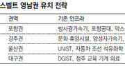 울산시와 대구시, 경북도가 ‘국제과학비즈니스벨트’ 유치를 위해 보조를 맞추기로 했다. 이에 따라 지난해 12월 정부에 유치신청서를 제출한 광주광역시는 물론이고 경기, 충청권과 치열한 유치전이 전개될 것으로 전망된다.○ “영남권이 최적지” 박맹우 울산시장과 김범일 대구시장, 김관용 경북도지사 등은 11일 오후 5시 대구 인터불고 엑스코호텔에서 UNIST(울산과학기술대) 포스텍(포항공대) 등 3개 시도 대학과 연구기관 관계자 등 150여 명이 참석한 가운데 ‘국제과학비즈니스벨트(과학벨트)’ 유치를 위한 양해각서(MOU)를 체결했다. 3개 시도는 MOU에서 “정부가 국가경쟁력 강화를 위해 추진하고 있는 과학벨트 조성 사업이 국가와 지역 발전에 기반이 될 것으로 인식하고 우리 지역 유치를 위해 상호 협력한다”고 밝혔다. 3개 시도는 △유치추진위원회 구성 △유치를 위한 대외 협력 및 홍보 활동 공조 △유치제안서 등 관련 자료 공동 작성 등을 약속했다. 울산과 포항, 대구를 연결하는 이 지역은 자동차와 조선, 석유화학, 철강 등 국가 주력산업이 모여 있어 연구개발 성과를 사업으로 연결하기에 좋은 여건이다. 또 UNIST와 포스텍, 대구경북과학기술원(DGIST) 등 이공계 특성화 대학과 기관의 우수한 인력 및 연구개발(R&D) 인프라를 갖추고 있어 기초과학 연구 중심으로 부상할 수 있다는 분석. 특히 포항 방사광가속기와 경주 양성자가속기 등 기존 가속기와 함께 영남권에 중이온가속기가 들어서면 기초과학 연구에 시너지 효과를 거둘 수 있을 것으로 3개 시도는 전망했다.○ 치열한 유치전 과학벨트는 당초 세종시 수정안에 포함됐으나 지난해 6월 국회에서 수정안이 부결돼 표류하다 지난해 12월 ‘국제과학비즈니스벨트 조성 및 지원에 관한 특별법’이 국회를 통과하면서 전국적인 유치운동이 펼쳐지고 있다. 광주시는 지난해 12월 정부에 과학벨트 유치 제안서를 제출했다. 경기도는 이달 중 과학벨트 유치를 위한 연구용역을 실시해 결과를 청와대 등에 낼 계획이다. 충청권 시도지사 등은 “과학벨트 충청권 입지는 이명박 대통령 선거 공약”이라며 압박하고 있다. 정부는 올 상반기(1∼6월)에 과학벨트 입지를 선정한 뒤 2017년까지 국비 3조5487억 원을 들여 기초과학연구원과 중이온가속기 등을 건립할 계획이다. 교육과학기술부는 과학벨트 조성 이후 20년간 경제적 파급 효과는 국가 차원에서는 생산 235조9000억 원, 부가가치 101조8000억 원, 고용 212만2000명을 유발할 것으로 추산했다. 유치지역에서는 생산 212조7000억 원과 부가가치 81조2000억 원, 고용 136만1000명으로 보고 있다.정재락 기자 raks@donga.com}
