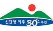 충북 단양군이 신단양 이주 30주년을 맞아 대대적인 홍보작업을 추진한다. 3일 단양군에 따르면 군은 신단양 이주 30주년을 기념하는 홍보문구를 만들어 현수막과 각종 홍보물 등에 사용키로 했다. 현수막 문구(사진)는 단양의 지명 유래인 ‘연단조양’을 형상화한 것으로 녹색과 파란색 모양의 산과 강은 신선이 먹는 환약인 ‘연단’을 연상하는 청정함을 의미하고, 붉은 원은 태양을 본떠 빛을 골고루 비춘다는 ‘조양’을 뜻하며 단양의 미래를 상징한다.장기우 기자 straw825@donga.com}