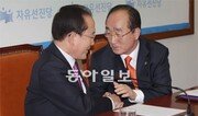 지난해 10월 합당 이후 갈등을 빚어온 자유선진당 심대평 대표와 이회창 전 대표가 함께 화합을 강조하며 당내 분열 수습에 나섰다. 심 대표와 이 전 대표는 10일 긴급 기자회견을 열어 “4·11총선을 앞두고 굳게 화합해 총선에서 승리를 이끌어내는 것에 최선을 다하겠다”고 밝혔다. 이 전 대표는 “당내 불협화음과 혼란스러운 상황에 대해 송구스럽게 생각한다”면서 “지금은 총선을 눈앞에 두고 있어 당의 결속과 단합이 절실히 필요하다”고 말했다. 심 대표는 “(이 전 대표와) 개인적인 갈등이 있는 것처럼 주변에서 말을 만들어 냈는데 더 이상 방치할 수 없었다”면서 “이 (전) 대표께서 ‘더 이상 끌면 안 된다’며 이끌어주셨다”고 ‘화합 선언’ 배경을 밝혔다. 이 전 대표는 또 4·11총선에서 당 명예 선거대책위원장을 맡기로 했다. 선진당은 심 대표 취임 이후 전당대회 개최, 공천심사위원회 구성 문제 등을 놓고 심한 내홍을 겪어 왔다. 이 전 대표의 당 대표 시절 대변인과 정책위의장을 지낸 선진당 박선영 의원이 6일 심 대표의 사퇴를 촉구하며 당내 분란이 최고조에 이르기도 했다. 하지만 지난주 당 일각에서 충청 지역 총선 필패론과 이 전 대표의 보수 진영 내 비박(비박근혜)계 연대설 등이 나오자 심 대표는 이 전 대표를 찾아가 당 명예 선거대책위원장을 맡아달라는 요청을 한 것으로 알려졌다. 이 전 대표는 ‘백의종군’ 선언을 언급하며 고사했지만 이번 주 들어 심 대표 사퇴론까지 불거지는 등 당내 내홍이 증폭되자 이날 수락했다. 이 전 대표는 “지금도 당직을 맡지 않고 백의종군으로 할 수 있는 일을 하겠다는 것은 마찬가지이지만 제가 명예 위원장을 맡으면 당의 화합 징표가 되지 않을까 해서 맡게 됐다”고 설명했다.홍수영 기자 gaea@donga.com}