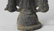 삼국시대인 6세기 후반에 제작된 것으로 추정되는 금동삼존불이 강원 양양군 진전사지에서 나왔다. 문화재청은 양양군과 국강고고학연구소가 올 7월부터 진전사지 3층 석탑(국보 제122호) 주변에서 진행한 발굴조사에서 삼국시대의 금동보살삼존불입상(金銅菩薩三尊佛立像)을 발견했다고 16일 밝혔다. 이 불상은 광배(光背·빛을 형상화한 불상 뒤쪽의 장식물)의 위쪽 일부와 받침대 역할을 하는 연꽃무늬 좌대가 조금 떨어져 나갔으나 보존 상태가 매우 좋은 편이다. 높이 8.7cm로 성인 손바닥 크기에 불과하지만 삼국시대의 불상이 많지 않고 출토지가 명확하며 보존 상태가 양호하다는 점에서 국보급으로 평가된다. 국립춘천박물관이 진행한 보존처리 과정에서 청동으로 보이는 이 불상의 재질이 금동이라는 사실이 확인됐다. 본존불을 중심에 두고 좌우에 보살을 배치하는 삼존불이지만 본존불에 부처가 아닌 보살을 배치한 점이 특징이다. 중심에 관음보살이 있고 양옆에는 본존불을 보좌하는 협시보살이 새겨져 있다. 관음보살과 협시보살 사이에 구멍이 2개 뚫려 있는 점 역시 독특한 형식으로 이 같은 사례는 처음 발견된 것이라고 문화재청은 설명했다. 문화재청 관계자는 “세 가닥으로 올라간 보관(寶冠), ‘X’자형의 옷 주름, 화불 등으로 미뤄 볼 때 삼국시대에 제작된 세련된 양식의 불상으로 볼 수 있다”고 말했다.유원모 기자 onemore@donga.com}