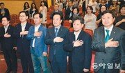 “오늘은 결코 잊어서는 안 되는 일을 잊고 살았던 우리가 우리 자신의 기억을 스스로 일깨우는 순간이다.”(새누리당 이병석 의원) “희생된 분들을 추모하고 유족을 돕고 안보를 튼튼히 하는 데는 여야가 따로 없다.”(새정치민주연합 신기남 의원) 6·25전쟁이 발발한 지 65년이 되는 25일 두 의원은 국회 의원회관에서 열린, 2002년 6월 29일 북한과의 교전 과정을 다룬 영화 ‘연평해전’ 상영회에서 이렇게 말했다. 이 의원은 “여섯 용사의 고귀한 희생이 우리에겐 자유를 남겼고 지금 우리가 누리는 평화의 디딤돌이 됐다”며 “그러나 그날의 뜨거운 진실은 월드컵 4강 신화 속에 소리 없이 사라졌다”며 아쉬워했다. 신 의원은 “그동안 연평해전 희생자들에 대한 대접이 미흡했다”며 “2005년부터 연평해전 후원회를 조직해 추모의 밤 행사를 하고 있다”고 말했다. 이날 행사에는 새누리당 주호영, 새정치연합 주승용 박완주 장병완 유성엽 백재현, 무소속 유승우 의원 등 국회 관계자와 일반 시민 200여 명이 함께했다. 당초 여야 원내대표도 참석할 예정이었지만 박근혜 대통령의 국회법 개정안 거부권 행사로 정국이 얼어붙은 관계로 참석하지 못했다. 이 영화는 연평해전 당시 순직한 고 윤영하 소령과 한상국 조천형 황도현 서후원 중사, 박동혁 병장 등 6명의 이야기를 담았다. 자금 마련에 어려움을 겪어 크라우드펀딩(개인 단체 등 불특정 다수로부터 자금을 모으는 것)을 하며 6년여 만에 제작됐다. 크라우드펀딩 참여자 7000여 명 등 6만 명의 후원자가 참여했다고 한다. 김학순 감독은 이날 “6만여 명의 후원으로 영화가 완성된 것은 우리나라 영화산업에 처음 있는 일”이라며 “아무쪼록 이 영화가 나라를 지키다 희생된 여섯 전사자들의 영령을 위로하고 유가족의 마음을 위로하는 영화가 되었으면 한다”고 말했다. 2시간짜리 영화 도중 교전 장면에서 희생되는 장면이 나올 때는 곳곳에서 탄식이 쏟아졌다. 영결식 장면에서는 눈물을 흘리는 관람객도 보였다. 공군 입대를 앞둔 아들과 함께 영화를 관람한 박완주 의원은 “마음이 짠했다. 다시는 이런 비극이 일어나지 않아야 한다”고 말했다. 한편 이명박 전 대통령도 이날 서울 강남구 청담시네시티에서 ‘연평해전’을 감상했다. 이 전 대통령은 영화 관람 전 기자들과 만나 “나라를 지키는 방법은 여러 가지지만 목숨 바쳐 나라를 지키는 것 이상의 애국은 없다”고 말했다. 이 전 대통령은 2002년 월드컵 응원 사진 등이 담긴 ‘연평해전’의 영화 포스터를 바라보며 “당시 (연평해전의 희생자) 가족들이 얼마나 속상했겠느냐”며 안타까워했다. 이어 “이 영화를 계기로 연평해전에서 희생된 이들을 오래도록 기억해야 할 것”이라며 “애국심이 가장 높은 가치로 평가되는 나라가 제대로 된 나라”라고 강조했다. 이 전 대통령은 집권 첫해인 2008년 직전 정부에서 ‘서해교전’으로 불렸던 명칭을 ‘제2연평해전’으로 바꿨다.황형준 기자 constant25@donga.com}