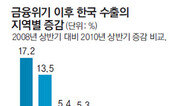 금융위기 이후 한국 경제성장의 절반 이상이 중국(홍콩 포함)과의 교역효과에서 발생했다는 분석이 나왔다. 중국 경제성장률이 1%포인트 움직일 경우 한국의 대중(對中) 수출 물량은 2.9% 변화한다는 계산도 나왔다. 산업연구원은 22일 ‘금융위기 이후 한국 경제의 중국 의존도 추이와 시사점’ 보고서를 통해 이같이 밝히고 “중국에 대한 한국의 교역의존도 및 수출증가율은 주요국 중 가장 높은 수준”이라고 분석했다. 이 보고서는 한국의 2008년 상반기(1∼6월) 국내총생산(GDP)과 2010년 상반기 GDP를 비교했다. 이 기간 GDP는 4.2% 증가했는데, 이 중 대중 순수출의 성장기여도가 2.2%에 이르렀다. 강두용 산업연구원 동향분석실장은 “이는 52%의 기여율”이라며 “금융위기 이후 중국경제 호조로 한국의 대중 수출이 늘어나면서 이 효과가 국내 경기 회복에 주도적 역할을 한 것”이라고 풀이했다. 이 기간에 한국의 대중 수출증가율은 19.2%였다. 이는 미국(17.3%) 독일(11.0%) 일본(6.3%) 프랑스(―7.8%) 영국(―28.1%) 등 주요국의 대중 수출 증가율 중에서 가장 높은 수준이었다. 한편 2010년 상반기 기준 대중 수출이 한국 총수출에서 차지한 비중은 31%로 집계됐다. 이는 다른 주요 선진국으로의 수출 비중을 모두 합한 것보다 높은 수치다. 특히 전자부품과 석유화학의 대중 수출의존도는 각각 56%, 44%에 달했다. 합섬원료(83%), 석유화학 중간원료(73%) 등 품목은 대중 수출 의존도가 절반을 훌쩍 넘어섰다.임우선 기자 imsun@donga.com}