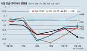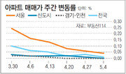 서울 아파트 시장 안정세가 이어지고 있다. 7일 부동산114에 따르면 지난주 서울 아파트값은 0.04% 오르는 데 그쳤다. 전주 상승률(0.06%)보다 0.02%포인트 줄었다. 4월부터 시행된 다주택자 양도소득세 중과 효과가 뚜렷하다는 평가다. 실제로 4월 6일부터 이달 4일까지 한 달간 서울 아파트값 상승률은 0.37%다. 직전 한 달 상승률(1.44%)의 4분의 1 수준이다. 시장 과열을 부추겼던 재건축 아파트값은 0.01% 하락하며 2주 연속 마이너스 상승률을 보였다. 일반 아파트값 상승폭도 전주 0.08%에서 지난주 0.05%로 줄었다. 서울 집값 상승률이 주춤하면서 신도시 및 경기·인천 등 인근 지역도 잠잠한 모습이다. 지난주 신도시 아파트값은 제자리걸음(0.0%)을 했으며 경기·인천 역시 3주 연속 아파트값에 변화가 없다. 이로 인해 전국 집값 상승률은 전주(0.03%)보다 0.02%포인트 줄어든 0.01%로 집계됐다. 전세시장 하락세도 여전하다. 서울 전세금이 0.04% 떨어졌고 신도시와 경기·인천도 0.03%씩 하락했다.강성휘 기자 yolo@donga.com}