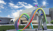 대구시는 동대구역 광장에 상징 조형물을 10월 중 설치한다. 장소는 새 고가교 건설 및 확장에 따라 새로 조성 중인 곳이다. 조형물(조감도)은 가로 18.1m, 세로 12.7m, 높이 10.8m 크기다. 전시전문업체인 월러스코(경기 고양시) 소속 최진호 작가의 작품으로 명칭은 ‘웃는 얼굴의 대구시’이며 부제는 ‘무한시선’이다. 화강석 좌대에 철강으로 뫼비우스 띠를 형상화했다. 대구의 관문 이미지와 미래 성장을 표현했다. 발광다이오드(LED)로 야간 경관 조명도 설치한다. 작품료는 5억 원이다. 동대구역 새 고가교는 모습을 드러내고 있다. 현재 공정은 84%. 10월 준공 예정이다. 시는 1524억 원을 들여 기존 다리를 철거하고 1만8400m²인 역 주변 공간을 6만9081m²로 4배 가까이로 확장하는 공사를 하고 있다. 넓어진 공간에 상징 조형물을 비롯해 잔디광장과 바닥분수 등을 갖춘 2만3767m² 크기의 광장을 조성한다. 동대구역 도로 565m 구간은 기존 6차로에서 10차로로 확대된다.장영훈 기자 jang@donga.com}
