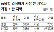 냉면은 전북이, 짜장면은 대구가 전국 시도 가운데 가장 값이 싼 것으로 조사됐다. 시내버스, 전철 등 지방공공요금은 1년 동안 전국 평균 8.9%나 오른 것으로 집계됐다. 23일 기획재정부가 내놓은 ‘서민생활 밀접 30개 품목 시도별 가격비교’에 따르면 지난해 8월부터 올해 8월까지 1년간 전북의 냉면(한 그릇) 평균가격은 5800원으로 16개 시도 가운데 가장 낮았다. 짜장면(한 그릇)은 대구가 3833원으로 가장 저렴했고 삼겹살(200g)은 강원이 9889원으로 유일하게 1만 원 미만인 것으로 나타났다. 지방공공요금은 전국 평균 8.9%나 급등한 것으로 나타났다. 조사 대상 7개 품목 가운데 택시(0.0%)와 쓰레기봉투(―0.1%)를 제외한 전철(13.2%), 시내버스(11.4%·카드 기준), 상수도(3.3%), 도시가스(9.8%), 하수도(13.5%)가 모두 올랐다.유성열 기자 ryu@donga.com}
