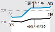 세계적 기상이변으로 국제 곡물가격이 급등함에 따라 9월 중 유엔식량농업기구(FAO)의 국제 곡물가격지수와 식량가격지수가 올해 들어 최고치로 상승했다. 7일 농림수산식품부에 따르면 FAO가 발표한 9월 국제 곡물가격지수는 263으로 올해 들어 가장 높았다. 이 지수는 지난해 4월(265) 고점을 찍은 뒤 올해 5월(221)까지 하락세를 보였지만 가뭄 등 기상이변이 속출한 7월(260)부터 급등하고 있다. FAO가 곡물, 설탕 등 55개 주요 식품류의 국제가격 동향을 모니터해 매달 발표하는 식량가격지수도 9월 216으로 올해 들어 가장 높았다. 이 지수는 2002∼2004년 평균가격을 100으로 보고 산출한다. FAO는 “국제 곡물가격지수가 역사상 가장 높았던 2008년 4월(274)보다 아직 낮은 수준이지만 유럽과 미국, 중앙아시아의 극심한 가뭄으로 올해 세계 곡물생산량이 줄어들 것으로 예상되는 만큼 당분간 상승세가 이어질 것”이라고 전망했다.유성열 기자 ryu@donga.com}