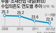 국내 부품·소재 부문의 대일(對日) 수입의존도가 사상 최저 수준으로 떨어졌다. 7일 지식경제부가 내놓은 ‘부품·소재 산업 무역동향’에 따르면 올해 1∼9월 일본에서 부품·소재를 수입한 금액은 277억 달러(약 30조7470억 원)로 지난해 같은 기간보다 7.8% 줄었다. 이에 따라 부품·소재 부문의 대일 수입의존도는 사상 최저치인 22.9%로 하락했다. 올해 3분기(7∼9월) 부품·소재 산업의 대일 무역적자도 53억 달러로 지난해 2분기(4∼6월) 이후 6분기(18개월) 연속 감소한 것으로 집계됐다. 또 3분기 국산 부품·소재의 대미(對美) 수출액은 172억 달러로 한미 자유무역협정(FTA) 효과에 힘입어 작년 동기대비 10.2% 늘었다. 지경부 당국자는 “올해 들어 9월까지 무역흑자가 지난해보다 13.3% 감소한 것을 고려하면 부품·소재 산업이 상대적으로 선방하고 있는 것”이라고 설명했다. 유성열 기자 ryu@donga.com}