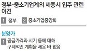 세종시에 조성될 중소기업 전용 산업단지 분양가를 놓고 정부와 중소기업계가 서로 다른 목소리를 내고 있다. 정부는 세종시 분양가가 저렴할 경우 주변의 지방 중소기업들을 ‘빨아들일 수 있다는 점’을 우려해 중소기업들이 기대하는 수준까지 분양가를 낮추지는 않을 것으로 보인다. 중소기업중앙회 김기문 회장이 18일 “세종시에 132만 m²(40만 평) 규모의 중소기업 전용 녹색산업단지를 평당 70만∼75만 원의 분양가로 조성하기로 정부와 합의했다”고 발표하자 총리실 세종시기획단은 19일 즉각 해명자료를 내고 중앙회 측 일부 발표 내용을 부인했다. 세종시기획단은 “세종시 발전안에 132만 m²의 첨단 녹색산단 조성이 포함된 것은 사실이지만 아직까지 공급가격과 시기, 입주업체 등에 대한 구체적인 계획을 세운 바 없다”고 밝혔다. 이와 관련해 세종시기획단 관계자는 이날 동아일보와의 전화 인터뷰에서 “중소기업 전용 공단 분양과 관련한 정부의 의중은 (분양가를) 너무 싸게 해서 인근 공단의 씨가 마르면 안 된다는 것”이라며 “중기중앙회가 언급한 평당 70만 원대의 헐값 분양은 가능성이 떨어진다”고 지적했다. 이어 “낮은 분양가로 주변 공단 중소기업들을 빼 가면 지방자치단체와 정치권의 거센 반발이 예상된다”며 “세종시는 입지조건이 좋아 오히려 분양가가 인근 시세보다 소폭 올라갈 수도 있다”고 덧붙였다. 이는 대기업보다 평당 20만∼25만 원가량 저렴한 분양가로 중소기업들을 세종시에 유치할 것이라는 중기중앙회의 공식 발표와 정면으로 배치되는 내용이다. 이처럼 정부가 즉각 해명에 나선 것은 대기업에 비해 자금력이 떨어지는 중소기업들이 분양가에 훨씬 민감하게 움직일 수밖에 없기 때문이다. 전문가들은 세종시가 대덕연구단지와 가깝고 분양가가 저렴해 대전 이남의 광주, 경북 구미, 전북 군산 등 지방공단의 공동화를 초래할 가능성이 있다고 보고 있다. 총리실 관계자는 “충남 공주와 조치원, 대덕지역, 충북 오송, 오창의 기업들이 세종시로 옮길 가능성이 있다”며 “하지만 균형발전 차원에서 입주조건을 신규 창업 및 벤처기업 등으로 제한할 방침”이라고 설명했다.김상운 기자 sukim@donga.com}