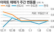 수도권 아파트 매매시장의 관망세가 짙어지고 있다. 다음 달 대출규제를 앞두고 주택 수요자들이 매매를 꺼리고 있기 때문으로 보인다. 17일 부동산114에 따르면 지난주 서울 아파트 매매가격 주간 변동률은 0.00%였다. 4주째 제자리걸음이다. 서울에서는 강남 지역의 하락세가 두드러졌다. 강동구(―0.11%) 강남구(―0.04%) 관악구(―0.02%) 서초구(―0.01%) 등에서 아파트 매매가가 떨어졌다. 주로 재건축 아파트가 많은 지역이다. 부동산114 관계자는 “시장의 불확실성으로 재건축 투자 수요가 크게 위축됐다”고 설명했다. 지난주 수도권, 신도시 아파트 매매가 주간 변동률도 서울과 같은 0.00%였다. 전세시장도 위축된 모습이다. 매물이 부족한 지역에서 전세금이 올라 지난주 서울 아파트 전세금은 전주보다 0.12% 상승했지만 전반적인 수요는 늘어나지 않고 있다고 부동산업계는 설명한다. 신도시와 수도권 아파트 전세금의 같은 기간 변동률은 각각 0.00%, 0.01%에 머물렀다.조은아 기자 achim@donga.com}