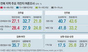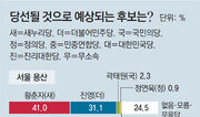 [서울 용산]여당 지지세 강해… 黨 바꾼 진영 고전서울 용산은 최대 격전지 중 한 곳으로 꼽힌다. 이 지역에서 내리 3선을 한 진영 후보가 새누리당에서 컷오프(공천 배제)된 뒤 더불어민주당으로 당적을 옮겼기 때문이다. 기존의 새누리당 지지층이 진 후보를 지지할지, 아니면 변절을 심판할지가 변수로 떠올랐다. 동아일보-채널A 4차 여론조사에서 새누리당 황춘자 후보(38.4%)는 진 후보(29.0%)를 9.4%포인트 차로 앞섰다. 정당 지지도는 새누리당(42.7%)이 우세하다. 야당인 더민주당(18.5%)과 국민의당(19.1%)을 합친 수치보다 높다. 후보 선택 시 고려사항에서 후보의 자질(29.9%)과 정책·공약(28.7%), 소속 정당(27.1%)이 비슷하게 나와 두 후보 간 막판 표심 모으기가 승패를 가를 것이라는 평가가 나온다. 적극 투표층 지지도에서도 황 후보(42.9%)가 진 후보(30.6%)를 앞서고 있다. 연령별로 황 후보는 50대 이상, 진 후보는 20∼40대의 지지를 받고 있는 것으로 나타나 세대 간 대결 구도가 예상된다. 결국 후보들 중 누가 지지층을 더 많이 투표장에 끌어내느냐가 관건이 될 것으로 보인다. 황 후보 측은 “남은 기간 유권자들을 최대한 많이 만나 지지율을 끌어올리겠다”고 밝혔다. 진 후보 측은 “용산 지역은 정당보다 후보 인물을 보고 투표하는 성향이 강하다”고 주장했다. [서울 노원병]안철수, 이준석에 10.1%P차이로 앞서새누리당 이준석 후보와 더불어민주당 황창화 후보, 국민의당 안철수 후보가 맞붙은 서울 노원병은 안 후보와 이 후보의 양강 구도가 펼쳐지는 양상이다. 이번 조사에서 안 후보는 40.6%의 지지를 얻어 이 후보(30.5%)를 10.1%포인트 앞섰다. 황 후보는 13.7%를 얻었다. 다만 적극 투표층에서는 안 후보(39.8%)와 이 후보(32.4%) 간 격차가 약간 줄어드는 것으로 나타났다. 안 후보는 연령별 지지도에서도 60대를 제외한 전 연령층에서 30% 이상을 기록하며 1위를 차지했다. 60대 이상에서는 이 후보(55.4%)가 가장 높은 지지도를 기록했다. 이 지역에서 재선에 도전하는 데다 국민의당을 이끌고 있는 안 후보의 영향력은 정당지지도에서도 그대로 나타났다. 정당지지도에서 국민의당(31.4%)이 새누리당(29.4%)과 더민주당(20.8%)을 앞섰다. 3일 발표된 서울경제신문의 여론조사에서도 안 후보(42.8%)가 이 후보(31.1%)와 황 후보(13.6%)를 제쳤다. 안 후보 측은 “3년간의 의정활동에 대한 평가와 제3당에 대한 기대가 담긴 결과로 보인다”며 “10%포인트 이상 차이로 승리하는 것을 목표로 끝까지 뛰겠다”고 말했다. 이 후보 측은 “접전 양상인 만큼 마지막까지 최선을 다하겠다”고 했다.[대구 수성을]주호영 우세… 이인선과 13.5%P차대구 수성을에서는 무소속 주호영 후보가 40.4%의 지지를 얻어 새누리당 이인선 후보(26.9%)를 13.5%포인트 차로 앞섰다. 적극 투표층에서는 주 후보와 이 후보가 각각 40.7%, 29.5%를 얻어 격차가 11.2%포인트로 약간 줄었지만 큰 변화는 없었다. 새누리당 지지자라고 밝힌 응답자 중 44.2%는 주 후보를 지지했다. 3선의 주 후보가 컷오프(공천 배제)에 반발해 탈당했음에도 아직 견고한 지지 기반을 갖고 있는 것으로 분석된다. 주 후보 측은 “공천의 부당함을 유권자들이 알고 있다”며 “박근혜 정부의 성공을 위해 일할 사람이라는 점을 부각시키겠다”고 말했다. 이 후보도 새누리당 지지층에서 42.1%의 지지를 받았다. 이 후보 측은 “공천 갈등이 계파 간 싸움으로 비치면서 지지층이 실망감을 갖고 있지만 선거 막판으로 갈수록 새누리당 후보로 결집을 하고 있다”고 주장했다. 정당 지지도는 새누리당이 55.3%로 가장 높다. 결국 여당 지지층이 주 후보와 이 후보 중 누구를 지지하느냐에 따라 승부가 갈릴 것으로 보인다. 연령대별로는 주 후보가 20∼50대에서 앞섰다. 특히 40대에서 주 후보의 지지가 52.8%로 이 후보(16.6%)보다 높았다. 반면 60대 이상에서는 이 후보(45.5%)가 주 후보(31.0%)보다 많은 지지를 받았다. [인천 남동을]조전혁-윤관석 오차범위內 접전 이어가인천 남동을에서는 새누리당 조전혁 후보와 더불어민주당 윤관석 후보 간 접전이 이어지고 있다. 이 지역은 더민주당과 정의당이 후보 단일화에 합의하고, 국민의당이 후보 등록을 하지 않으면서 여야 후보 간 ‘1 대 1’ 대결 구도가 형성됐다. 이번 조사에서도 윤 후보(35.7%)와 조 후보(33.2%)의 지지율 차이가 오차범위 내였다. 20∼40대에서는 윤 후보가 앞섰지만, 50대 이상에서는 조 후보가 앞섰다. 18대 총선에서는 조 후보가, 19대 총선에서는 윤 후보가 당선됐다. 정당 지지도에서는 새누리당(31.4%)이 더민주당(21.8%)과 국민의당(17.0%)을 앞섰다. 그러나 대통령 국정운영 평가에서는 ‘잘했다’(48.2%)와 ‘잘못했다(46.6%)’는 응답이 팽팽히 맞섰다. 윤 후보는 “현 정부의 경제 실패와 시민단체가 선정한 공천 부적격 후보를 심판하는 선거인 만큼 격차는 더 벌어질 것”이라고 주장했다. 조 후보는 “공천 파동에 실망한 유권자 일부가 무응답으로 돌아선 것으로 보이지만, 선거 막바지가 되면 무응답층이 줄어 승리의 희망이 있다”고 말했다.한상준 기자 alwaysj@donga.com고성호 기자 sungho@donga.com}