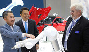 “이제는 업계 최신 기술과 트렌드에 눈과 귀를 기울여 사업 기회를 적극 발굴해야 한다.” 박정원 두산그룹 회장이 19∼22일 독일 뮌헨에서 열린 유럽 최대 규모의 로봇·자동화 분야 전시회 오토매티카에 참가해 밝힌 소회다. 24일 두산그룹에 따르면 박 회장은 그룹 최고기술책임자 이현순 부회장과 동현수 ㈜두산 부회장, 이병서 두산로보틱스 대표 등과 함께 오토매티카를 찾아 최신 시장 동향을 살폈다. 박 회장은 로봇 업체 전시장을 거의 한 곳도 빠짐없이 방문해 기술력과 디자인을 살핀 것으로 알려졌다. 업체 경영진과 딜러를 만나 로봇 시장 현황도 파악했다. 특히 박 회장이 관심을 보인 것은 스마트 팩토리 관련 전시장이었다. 두산은 지난해 말 4차 산업혁명 시대를 대비하기 위한 최고디지털혁신(CDO) 조직을 신설해 그룹 사업 영역에서 디지털 전환을 추진 중이다. 지난해 말엔 ㈜두산과 두산로보틱스를 필두로 협동로봇 시장에 진출했다. 다른 국가와 글로벌 기업에 비해 로봇 시장 진출이 늦었지만 앞선 기술을 바탕으로 시장을 선점하겠다는 전략을 세운 셈이다. 이번 전시회에서 두산로보틱스는 자체 개발한 협동로봇 작업을 직접 시현해 눈길을 끌었다. 빨간색 고급 자동차를 사람(작업자)과 협동로봇 6대가 함께 조립하는 모습을 직접 공개한 것이다. 협동로봇은 로봇과 사람이 함께 일하는 공정을 위한 기계다. 두산로보틱스는 이날 협동로봇이 스스로 필요한 부품을 찾아낸 뒤 작업자에게 직접 집어 전달하는 등의 협업 장면을 연출했다. 협동로봇 시현에 따른 성과도 있었다. 독일 자동차산업 지역의 딜러 업체들이 두산로보틱스 협동로봇 판매를 위한 업무협약을 현장에서 체결했다. 두산으로서는 유럽 시장에 처음으로 진출하는 발판을 마련한 셈이다. 두산그룹 관계자는 “시장 진입 초기임에도 두산 제품을 본 딜러들이 판매 희망 의사를 밝힌 것은 기대 이상의 성과다. 올해 안으로 유럽 내 딜러사를 추가 확보하고 두산 협동로봇만의 강점을 극대화해 해외 시장을 적극 공략해 나가겠다”고 말했다.변종국 기자 bjk@donga.com}