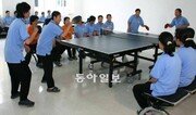 개성공단의 북한 근로자들이 여가시간에 탁구를 하고 있다. 이들은 식사 뒤 짬이 나면 탁구나 배구를 즐긴다고 한다. 올해 9월 촬영한 모습이다. 통일부 제공}