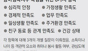 세계 10위 수준의 경제력을 갖춘 한국은 국제기구의 종합적인 행복도 측정에서는 항상 중하위권에 머물렀다. 유엔의 기대수명, 문자해독률 등 객관적 지표 조사에선 130여 개국 가운데 15위에 이르는 한국의 행복도는 개개인의 행복을 묻는 주관적 조사로 들어가면 94위로 떨어진다. 동아일보와 딜로이트컨설팅이 진행한 이번 동아행복지수(동행지수)는 심층 설문과 소셜네트워크서비스(SNS) 분석을 통해 이런 수수께끼 같은 한국인의 속마음을 샅샅이 들여다봤다.○ “돈으로 경험을 사라” 한국인의 평균 동행지수가 57.43점을 기록한 가운데 남자(57.29점)와 여자(57.57점) 간에는 유의미한 차이가 없었다. 연령별로 보면 30대가 20대보다 동행지수가 낮고 연령대가 올라가면서 행복감은 다시 높아졌다. 딜로이트 측은 “행복도가 연령대에 따라 ‘U자형’을 보였다”며 “나이가 들면서 경제적으로 안정되고 현실을 받아들이면서 심리적으로 안정된다”고 분석했다. ‘경제적 부(富)’는 행복의 필요조건으로 나타났다. 고소득 집단(월 1000만 원 이상)의 동행지수(70.68점)는 가장 소득이 낮은 집단(월 100만 원 미만·50.54점)에 비해 20점 이상 높았다. 다만 돈에 대한 지나친 집착은 오히려 행복을 저해했다. 20∼40대에선 돈이 아니라 가족을 가장 중요한 요소라고 답한 이들의 행복감이 가장 높았다. 50대에선 건강을 가장 중요하게 생각한 집단이 행복했다. 어떻게 돈을 써야 행복에 유리할까. 김재휘 중앙대 교수(심리학)는 “소유하지 말고 경험을 위해 소비하라”며 “최소한의 부를 축적했다면 자아실현을 위해 소비해야 행복해질 수 있다”고 조언했다. 한동안 SNS에서 인기를 끌었던 ‘국가별 중산층의 기준’이라는 글에서 한국인은 아파트 크기와 월급을 중산층의 기준으로 제시했다. 반면 프랑스에서는 외국어를 하고, 악기를 다룰 줄 알며, 남들과 다른 요리를 할 수 있는 사람을 중산층으로 제시했다. 프랑스에선 돈으로 경험을 사서 행복감을 느끼는 것을 중산층의 중요한 조건으로 본 것이다. ○ 황금연휴에 무관심한 기혼 여성 지역별 분석에서 전국에서 동행지수가 가장 높은 지역은 충남(60.11점)이며 부산(52.74점)이 가장 낮았다. 충남은 다른 지역에 비해 고용률이 높은 데다 지역 특유의 정서적인 안정감이 영향을 끼쳤다는 분석이 제기된다. 딜로이트 측은 부산의 행복도가 낮은 이유를 “경제활동 참가율과 고용률이 전국 최하위인 데다 해운대를 중심으로 치솟는 고층 빌딩 속에서 부산 시민이 느끼는 상대적 박탈감이 크다”고 분석했다. 결혼이 행복에 끼치는 영향도 흥미로웠다. 남녀와 연령을 구분하지 않으면 결혼을 한 사람(59.34점)이 미혼자(53.65점)에 비해 동행지수가 높았다. 하지만 미혼 여성은 40대에 행복감이 낮아지지만 전반적으로 행복했다. 특히 50대 미혼 여성의 동행지수(75.42점)는 전 연령대의 미혼 여성과 기혼 여성을 통틀어 가장 높았다. 반면 미혼 남성은 20대(56.30점)를 거쳐 50대에 이르면 동행지수가 43.11점으로 뚝 떨어진다. ‘남자는 결혼을 해야 행복하다’는 속설이 입증된 셈이다. 1년간 트위터 등의 SNS에서 ‘행복’이나 ‘좋다’ ‘만족스럽다’ 등과 함께 언급된 단어는 황금연휴, 셀프인테리어, 다이어트, 셰프 등이었다. 설과 추석 등이 낀 황금연휴가 기혼 남성의 행복에 긍정적인 영향을 끼쳤지만 기혼 여성의 관심은 크게 낮았다.○ 국민행복 정책 점검해야 정부가 국민의 행복을 높이기 위해 추진하는 정책에 대한 점검도 필요해 보인다. 박근혜 정부는 대통령 선거 당시 ‘국민행복 10대 공약’을 내걸고 복지 교육 국민안전 사회통합 등에서 65개 정책을 추진해왔다. 김병섭 서울대 교수(행정학)는 “대선공약으로 활용한 행복 정책들이 실제 국민의 삶과 관련된 만족도에 기여했는지 점검하고 보완할 필요가 있다”고 지적했다. 심리·사회학자들은 정책적 수단뿐 아니라 사회문화적인 변화가 있어야 근본적인 행복에 가까이 다가설 수 있다고 보고 있다. 타인과 비교하는 습성만 버려도 행복해질 수 있다는 얘기다. 설동훈 전북대 교수(사회학)는 “고등학교만 나와도 살 수 있는 소득 균형과 남의 눈치를 보지 않고 개인의 삶에 집중하는 문화가 만들어져야 행복 인프라가 굳건해진다”고 조언했다. 특별취재팀△정치부=김영식 차장 spear@donga.com△산업부=정세진 기자 △정책사회부=유근형 기자 △스포츠부=정윤철 기자 △국제부=전주영 기자 △사회부=박성진 기자}