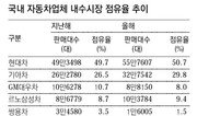 지난해 현대·기아자동차의 내수 시장 점유율이 처음으로 80%를 넘어섰다. 5일 현대차에 따르면 현대차는 지난해 국내에서 70만2672대를 팔아 시장점유율이 50.7%였으며, 기아차는 41만2752대를 판매해 29.8%의 점유율을 보였다. 두 회사의 판매 대수를 합치면 총 111만5424대로 수입차를 제외한 내수 시장 점유율은 80.5%에 이른다. 이는 두 회사가 1999년 합병한 이후 처음으로 80%대를 돌파한 것이다. 현대·기아차의 내수시장 점유율은 △2006년 73.2% △2007년 73.6% △2008년 76.9% 등으로 지속적으로 높아지는 추세다. 특히 기아차는 합병 이후 지난해 사상 최대의 시장 점유율을 보였다. 현대차 관계자는 “지난해 경쟁력 있는 신차들을 대거 출시하고, 쌍용자동차 사태로 인한 공백을 메운 것이 내수시장 점유율 상승으로 이어졌다”고 분석했다. 신형 쏘나타가 지난해 9월 출시 이후 매달 1만5000대 이상씩 연말까지 총 6만1345대가 판매된 데 이어 모닝(10만2082대), 싼타페(5만8324대), 포르테(5만1374대) 등 신차나 부분 변경 모델들이 베스트셀링 카 톱10에 들며 내수 시장을 점령했다. 이 밖에 르노삼성자동차의 지난해 국내 시장 점유율은 9.6%, GM대우자동차는 8.3%, 쌍용자동차는 1.6%였다.김상운 기자 sukim@donga.com}