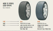 《글로벌 경제위기로 유럽과 미국 등지에서 자동차 수요가 크게 줄면서 타이어업계는 신흥시장 공략에 사활을 걸고 있다. 이에 따라 타이어업계는 국가마다 천차만별인 도로 사정이나 소비성향 등을 집중적으로 조사해 제품 개발에 적극 반영하고 있다.》 한국타이어는 ‘신시장 개척 태스크포스(TF)팀’을 구성해 아프리카와 중동 등 기존의 수출 사각지대를 중심으로 시장조사와 마케팅 활동에 박차를 가하고 있다. 이진영 한국타이어 상품기획팀장은 “세계 각 지역이 기후나 도로여건, 자동차 문화 등이 모두 달라 이에 알맞은 타이어를 개발할 필요가 있다”고 설명했다. 금호타이어 역시 이스라엘과 동남아 시장 등 틈새시장 공략에 여념이 없다. 국내 타이어업체들이 파악하고 있는 세계 각국의 타이어 선호도를 비교해 봤다.○ 한국은 승차감, 미국은 내구성 도로 사정이 선진국보다 열악한 국내 소비자들은 타이어를 선택할 때 승차감과 소음을 가장 많이 따진다. 일본이나 유럽 소비자들이 연료소비효율(연비)과 안정성을 많이 챙기는 것과 비교가 된다. 이 때문에 국내용 타이어는 트레드 패턴(접지면의 돌기)의 표면을 스펀지처럼 잘게 쪼개 충격을 잘 흡수하도록 설계하는 것이 보통이다. 또 트레드에 사용하는 고무도 가장 부드러운 연성 제품이 들어간다. 하지만 무조건 승차감이 부드럽다고 해서 좋은 것만은 아니다. 지면에서 전달되는 충격을 빨리 줄여서 조종 안정성을 확보하는 것도 중요하기 때문이다. 문제는 조종 안정성을 향상시키려면 승차감을 높이는 것과는 반대로 타이어 트레드의 강성을 높여야 한다는 점이다. 이 팀장은 “안전성과 승차감의 조화를 잘 이룰 수 있도록 트레드 옆 부분의 강성을 높이는 등의 방식을 동원하고 있다”고 했다. 세계 최대 자동차시장인 북미 지역은 차로 장기여행을 떠나는 경우가 많아 타이어가 얼마나 오래 버티느냐가 관건이다. 반면에 한국 시장과 마찬가지로 연비의 중요성은 떨어지는 편이다. 타이어업계 관계자는 “같은 선진국이라도 북미지역의 에너지 절약문화가 유럽보다 떨어지는 것은 타이어에 대한 선호도만 봐도 알 수 있다”고 덧붙였다.○ 유럽, 일본은 연비 위주로 유럽 시장은 여름용과 겨울용 타이어를 명확하게 구분해 소비하는 특성이 있다. 자동차 문화가 발달한 유럽에선 고속주행 시 안정성과 빗길 주행 시 제동성 등 노면과 기후에 적합한 타이어를 꼼꼼히 따져 선택하는 소비성향이 있기 때문이다. 환경 선진국답게 타이어의 연비 역시 중요한 선택기준이다. 북미, 유럽과 더불어 세계 3대 타이어 시장 중 하나인 일본은 고연비, 저소음, 조종 안정성을 종합적으로 따진다. 높은 이면도로 비중 등 협소한 도로사정으로 경차가 많다 보니 대형 타이어가 많이 팔리는 북미 지역과는 반대로 소형 타이어의 선호도가 높은 것도 특징이다. 중동 시장은 사막의 고온 환경을 견딜 수 있는 기온 내구성이 타이어 선택의 핵심 요소다. 대부분 산유국이거나 산유국에 인접해 있기 때문에 연비는 그다지 큰 고려 사항이 아니다. 다른 지역에 비해 중형 사이즈의 타이어가 잘 나가는 편이다.김상운 기자 sukim@donga.com}