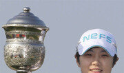 2주 만의 리턴매치. 두 번의 실패는 없었다. 박성현(22·넵스·사진)이 프로 데뷔 2년 만에 첫 우승 트로피를 들어올렸다. 그것도 메이저대회 우승컵을 품에 안았다. 21일 인천 베어즈베스트골프장(파72·6635야드)에서 열린 한국여자프로골프(KLPGA)투어 메이저대회인 한국여자오픈 최종 4라운드. 메르스(MERS·중동호흡기증후군) 여파에도 2만3000여 명의 갤러리가 운집했다. 챔피언 조에서 리턴매치를 펼치는 박성현과 이정민(23·비씨카드)의 맞대결을 보기 위해서였다. 2주 전 롯데스카이힐 제주CC에서 열린 롯데칸타타여자오픈의 최종 승자는 이정민이었다. 박성현에 3타 뒤진 2위로 최종 라운드를 출발했던 이정민은 끈질긴 추격전 끝에 승부를 연장전으로 몰고 간 뒤 끝내 우승했다. 이날 대회에서도 박성현은 3라운드까지 이정민에 5타를 앞서 있었다. 전날 인터뷰에서 박성현은 “이정민 선배와 꼭 다시 한번 대결하고 싶었는데 기회가 빨리 왔다. 같은 실수를 되풀이하지 않겠다”고 말했다. 이정민은 “5타가 따라잡지 못할 건 아니다. 내 게임 플랜을 충실히 지키면 (우승) 기회가 생길 것”이라고 응수했다. 하지만 극심한 부담감과 어려운 코스 세팅 탓에 두 선수 모두 자신의 기량을 맘껏 발휘하진 못했다. 특히 박성현은 경기 후반 들어 많이 흔들렸다. 13번홀(파4)에서 보기를 했고, 14번홀(파5)에서는 티샷을 오른쪽 워터 해저드에 빠뜨리는 등 실수를 거듭하며 트리플 보기를 범했다. 박성현은 이날 하루만 5타를 잃었다. 이정민 역시 2주 전과는 달리 찾아온 기회를 살리지 못했다. 9번홀(파4)에서 두 번째 샷을 그린 뒤 벙커에 빠뜨린 뒤 2타 만에 빠져나오는 실수를 저지르며 더블 보기를 했고, 경기 후반 16번홀과 18번홀에서도 보기를 했다. 결과는 최종 합계 1오버파 289타를 친 박성현의 승리였다. 이정민은 박성현에 2타 뒤진 3오버파 291타로 2위를 차지했다. 우승 상금 2억 원을 받는 박성현은 “언더파로 우승하고 싶었는데 그러지 못해 아쉽다. 2주 전 대회 때 아쉽게 우승을 놓쳐서 빨리 우승 기회가 다시 왔으면 좋겠다고 생각했는데 2주 만에 메이저대회 우승을 하게 돼 말로 설명할 수 없을 만큼 기쁘다. 우승 상금으로 카니발 한 대 사면 좋겠다고 생각했는데 우승 부상으로 카니발을 얻게 돼 너무 좋다”고 말했다. 안신애(25·해운대비치리조트)와 양수진(25·파리게이츠)은 4오버파 292타로 공동 3위에 올랐다. 이헌재 기자 uni@donga.com}