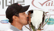박재범(33)이 프로 데뷔 15년 만에 한국프로골프(KPGA) 투어에서 첫 우승을 차지했다. 박재범은 21일 제주시 오라CC(파72·7137야드)에서 열린 KPGA 투어 바이네르오픈 최종 라운드에서 보기 없이 버디만 3개를 잡아내며 3언더파 69타를 기록했다. 최종합계 13언더파 275타로 배윤호(22·한국체대)와 동타를 이룬 박재범은 18번홀(파4)에서 열린 연장 첫 번째 홀에서 4m 버디를 성공시키며 국내 투어 첫 우승컵을 들어 올렸다. 2000년 투어 데뷔 후 한국과 일본을 오가며 활동하는 박재범은 2011년 일본 투어 챔피언십에서 한 차례 우승했지만 한국에서는 우승과 인연이 없었다. 16번홀까지 선두 배윤호에 2타 뒤지던 박재범은 17번홀(파3) 버디로 1타 차로 추격했다. 18번홀에서는 파를 했지만 배윤호가 같은 홀에서 보기를 적어내면서 동타가 됐다. 박재범은 “15년이라는 시간은 우승하기 전까지는 굉장히 긴 시간이었으나 우승하고 난 뒤에는 굉장히 짧게 느껴진다. 국내에서의 우승을 누구보다 간절히 원했기 때문에 너무 기쁘다. 지금도 기분이 좋다. 이젠 원하던 국내 우승도 이뤘으니 조금 더 여유를 가지고 경기할 것이다”고 말했다. 전날까지 선두에 1타 뒤진 공동 2위로 KPGA 사상 최고령 우승에 도전했던 신용진(51)은 이날 3타를 잃으면서 최종합계 7언더파 281타로 공동 20위에 자리했다.이헌재 기자 uni@donga.com}