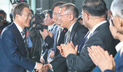 “현대자동차에 박수를 보낸다.” 문재인 대통령은 15일 경기 화성시 현대자동차 남양연구소를 찾아 이같이 말했다. 닷새 전 삼성디스플레이를 찾아 이재용 삼성전자 부회장을 직접 언급하며 “감사하다”고 한 데 이어 “박수를 보낸다”며 대기업 ‘기(氣) 살리기’에 나선 것이다. 문 대통령은 시스템반도체와 바이오헬스에 이어 이날 현대차 남양연구소를 찾아 혁신성장을 위한 3대 중점산업 현장방문을 마무리했다. 특히 조국 전 법무부 장관 사퇴 하루 만에 기업 현장방문에 나서면서 ‘조국 사태’로 악화된 민심을 되돌리기 위해 당분간 경제 다걸기(올인) 기조를 이어갈 방침이다.○ 삼성 이어 현대차 찾아 ‘경제 민생 드라이브’ 이날 오후 현대차 남양연구소 앞으로 문 대통령과 경호원 등이 탄 현대차의 수소전기차 넥쏘 3대가 도착했다. 청와대는 8월 수소경제 활성화 차원에서 대통령 전용차량에 넥쏘를 추가했다. 문 대통령은 올 1월 울산 지역경제투어에서도 정의선 현대차 수석부회장을 만나 “요즘 현대차, 특히 수소차는 내가 홍보모델”이라고 말했다. 문 대통령과 정 수석부회장의 만남은 올해만 7번째. 문 대통령은 취임 이후 현대차 울산공장 방문 등 11번에 걸쳐 정 수석부회장을 만났다. 문 대통령은 이곳에서 열린 ‘미래차 국가비전 선포식’에서 “현대차는 1997년부터 친환경차 연구개발에 돌입하여 세계 최초로 수소차 양산에 성공했다”며 “현대차의 친환경차 누적 판매량 100만 대 돌파는 이곳 연구원들의 공이 크다”고 격려했다. 문 대통령은 연설에서 15차례 ‘세계 최초’ ‘세계 1위’ ‘세계 선도’ 등의 표현을 쓰며 현대차와 미래차 산업 지원에 의지를 드러냈다. “우리의 목표는 2030년까지 미래차 경쟁력 1등 국가가 되는 것”이라며 “미래차로 4차 산업혁명 시대를 선도하겠다”고 밝혔다. 이어 “자율주행 서비스 시장은 경제 활력을 살리고 새로운 일자리를 만들 황금시장”이라며 “규제 샌드박스, 규제자유특구를 통해 규제 완화에 더욱 속도를 내겠다”고 했다. 정 수석부회장은 “문 대통령님이 참석한 가운데 정부가 발표한 미래차 발전전략이 기업들에 큰 힘이 될 것으로 확신한다”며 “현대차그룹도 최선을 다해 미래차 시대를 여는 데 앞장서겠다”고 말했다. 이어 “현대차그룹은 자동차 제조사에서 고객에게 새로운 경험을 제공하는 ‘서비스 회사’로 탈바꿈할 것”이라며 “이를 위해 미래차 분야에 2025년까지 총 41조 원을 투자할 예정”이라고 화답했다.○ “부산에서 생산하니까”… PK 민심 달래기도 문 대통령은 비전 선포식을 마친 뒤 현대차가 스위스에 수출할 예정인 세계 첫 수소트럭과 수소청소차를 살펴보며 “국내에는 보급을 안 하느냐”며 관심을 보였다. 이어 전시장에 마련된 르노삼성자동차의 초소형 전기차 트위지를 직접 시승한 문 대통령은 “전부 다 (트위지를) 가지고 싶어 할 것 같다”고 말한 뒤 “더군다나 이게 부산의 중소기업에서 생산하기 때문에”라고 말해 주변의 웃음이 터지기도 했다. 부산 출신인 조 전 장관 사태로 PK(부산경남) 지역에서 대통령과 더불어민주당의 지지율이 하락한 가운데 자신의 ‘정치적 고향’인 부산 민심 달래기에 나선 것 아니냐는 말이 행사장 안팎에서 나왔다. 문 대통령이 조 전 장관 사퇴 하루 만에 대기업을 찾은 것은 경제 총력전으로 국정 고삐를 당기기 위해서다. 문 대통령은 전날 조 장관 사퇴 이후 주재한 수석·보좌관회의에서 “(국민) 역량과 에너지가 통합과 민생, 경제로 모일 수 있도록 마음을 모아주길 바란다. 저부터 최선을 다하겠다”며 경제 문제에 집중하겠다는 의지를 드러냈다. 이날 행사는 ‘조국 사태’가 한창이던 지난달 말부터 추진된 것으로 알려졌다. 특히 청와대는 야당이 요구해온 조 장관 사퇴로 국정 정상화의 동력이 생긴 만큼 경제 입법에 속도를 낼 방침이다. 청와대 관계자는 “당분간 무조건 경제 이슈로 갈 것”이라며 “국정 정상화의 공이 국회로 넘어간 만큼 국회가 민생·경제 입법에 협조해야 할 시간”이라고 말했다.문병기 기자 weappon@donga.com}