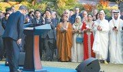 문재인 대통령은 18일 주한 외교단 초청 리셉션을 열고 “2020년 도쿄 하계올림픽, 2022년 베이징 동계올림픽으로 이어지는 동아시아 릴레이 올림픽의 연속적인 성공을 위해 최선을 다할 것”이라고 밝혔다. 문 대통령은 이날 청와대 녹지원에서 해리 해리스 주한 미국대사 등 111개국 대사와 17개 국제기구 대표 등 202명을 차례로 접견했다. 문 대통령이 한국에 주재하는 외교단 전체를 청와대로 초청한 것은 처음이다. 특히 이날 리셉션에선 문 대통령의 나가미네 야스마사(長嶺安政) 주한 일본대사 접견이 주목을 받았다. 문 대통령은 기모노를 입은 부인과 함께 인사에 나선 나가미네 대사와 2분 20초 정도 대화를 나눴다. 해리스 대사와의 개별 접견이 50초에 그치는 등 대부분의 대사들과 1분 남짓 대화한 것을 비교하면 가장 긴 시간을 일본 대사에게 할애한 셈이다. 대화는 대부분 문 대통령이 먼저 말을 건네는 방식으로 진행됐으며 문 대통령은 접견을 마치며 미소를 짓기도 했다. 나가미네 대사는 22일 부임하는 도미타 고지(富田浩司) 신임 대사와 교체돼 일본으로 돌아갈 예정이다. 문 대통령은 접견을 마친 뒤 환영사에서 “공정하고 자유로운 무역을 통해 세계 경기를 살리고 기후 변화에 대응하는 것은 국제적 협력이 있어야 가능한 일”이라며 “그만큼 외교의 역할이 더욱 막중해지고 있다”고 말했다. 일왕 즉위식을 앞두고 있는 가운데 수출 규제 해결을 위한 대화 필요성을 강조한 것으로 풀이된다. 이어 문 대통령은 “한국은 지금 한반도 비핵화와 항구적 평화라는 역사적 변화에 도전하고 있다”며 “남북미 간의 노력이 우선이지만 국제사회의 지지와 협력이 반드시 필요하다”고 말했다.문병기 기자 weappon@donga.com}