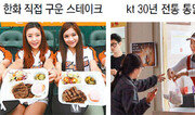 금강산도 식후경이라고 했던가. 야구장을 찾는 팬들도 마찬가지다. 눈과 함께 입까지 즐거우면 금상첨화. ‘치맥(치킨과 맥주)’으로 상징되던 프로야구 경기장의 먹을거리가 다양해지고 있다. 신생 kt는 비록 경기마다 고전하고 있지만 팬 서비스만큼은 기존 선배 구단을 능가하고 있다는 평가다. Kt의 안방인 수원 위즈파크에는 지역의 전통 맛집으로 30년 넘는 역사를 지닌 ‘진미통닭’과 ‘보영만두’가 관중의 입맛을 사로잡고 있다. kt 홍보팀 이상국 과장은 “스마트 폰을 통해 치킨 주문이 가능하다. 포수 뒤쪽 720석은 배달도 해 준다”고 말했다. 치킨 한 마리 가격은 1만7000원인데 최상의 맛 유지와 초벌구이 등의 조리 방식 때문에 하루 150~200마리밖에 공급할 수 없어 경기 초반 동이 나기 일쑤라는 게 kt의 설명이다. 한화의 대전 이글스 파크는 야구장 음식 문화의 고급화를 위해 국내 최초로 스테이크를 직접 구워 팔고 있다. 한화호텔&리조트가 운영을 맡아 주말 경기 때 특화석 관람객에게는 1만5000원 짜리 스테이크를 무료로 제공하고 있다. 넥센은 목동 구장에 일본 전통 카레집을 열었는데 팬들의 발걸음이 끊이지 않고 있다. ‘한 지붕 라이벌’ 두산과 LG의 안방인 서울 잠실구장에는 최근 대박을 터뜨린 이태원 스트리트 츄러스가 첫 선을 보였다. 정택기 LG 구단관리팀장은 “츄러스가 입소문을 타면서 매장이 인산인해를 자주 이룬다. 팬들이 편하게 다양한 음식을 즐길 수 있도록 메뉴 개발에 신경 쓰고 있다”고 했다. 지난해 개장한 KIA의 광주 챔피언스 필드에는 횟집과 생맥주 전문점이 영업 중이며 야구공 모양의 호두과자는 주말 경기 때는 평균 250통 이상 꾸준히 판매될 만큼 인기를 끌고 있다. SK의 인천 문학구장은 신포 닭 강정이 명물로 자리 잡은 지 오래다.김종석 기자 kjs0123@donga.com}