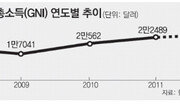 올해 한국의 1인당 국민총소득(GNI)이 2만3000달러를 넘어 역대 최고치를 보일 것으로 전망됐다. 5일 기획재정부 등에 따르면 올해 한국의 명목기준 1인당 GNI는 2만3159달러 안팎으로 예상됐다. 지난해 2만2489달러보다 670달러(약 3%) 늘어난 수치다. GNI는 국내총생산(GDP)에 한국 국적인 사람이 해외에서 벌어들인 소득을 더하고, 외국인이 한국에서 번 소득은 뺀 뒤 순수출(수출에서 수입을 뺀 수치)을 더한 것으로 한국인이 1년간 벌어들인 소득의 합계를 뜻한다. 1인당 GNI는 이를 인구 수로 나눈 것이다. 재정부는 지난해 말 올해 한국의 성장률을 3.7%로 전망하면서 올해 1인당 GNI를 2만3250달러로 예상했다. 그러나 올 6월 성장률 전망을 3.7%에서 3.3%포인트로 0.4%포인트 하향 조정함에 따라 1인당 GNI도 91달러 감소한 2만3159달러가 될 것으로 보인다. 한국의 1인당 GNI는 2007년(2만1632달러)에 처음으로 2만 달러를 넘어섰다. 하지만 글로벌 금융위기의 여파로 2009년 1만7041달러까지 떨어졌다가 2010년 2만562달러로 회복된 뒤 계속 상승해왔다.유성열 기자 ryu@donga.com}