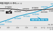 2010년 지방의 한 사립대를 졸업한 이모 씨(30)는 번번이 취업에 실패하다 보험회사 영업사원으로 사회생활을 시작했다. 정규직은 아니지만 입사가 쉽고 실적에 따라 연봉을 주는 조건이 나쁘지 않다고 생각했다. 하지만 하루 종일 고객을 상대하는 외근은 힘겨웠고, 취업준비생 또는 비정규직인 친구들에게 보험 가입을 부탁하기도 어려웠다. 이 씨는 결국 1년 만에 그만두고 부모에게서 돈을 빌려 작은 술집을 차렸다. 이마저도 최근 경기가 침체되면서 영업이 잘 안돼 걱정이 태산이다. 이 씨는 “대학 졸업장은 내게는 아무짝에도 쓸모없는 종잇장일 뿐”이라고 푸념했다. 13일 통계청의 고용통계에 따르면 올해 2분기(4∼6월) 현재 대졸(전문대졸 포함) 취업자 수는 1019만 명으로 사상 처음 1000만 명을 돌파했다. 지난해 같은 기간(972만6000명)보다 46만4000명 증가한 것이며 1982년(111만 명) 100만 명을 넘어선 이후 30년 만에 10배로 늘어난 것이다. 세계 최고 수준의 대학 진학률이 장기적으로 유지된 결과인데, 대졸자는 넘쳐나지만 고학력자를 필요로 하는 기업은 그만큼 많지 않아 ‘일자리 미스매치’ 현상은 계속 심화되고 있다. 대졸 취업자 수는 2007년부터 매년 40만여 명씩 늘며 큰 폭으로 증가했다. 글로벌 금융위기가 닥쳐 기업들이 채용 규모를 줄인 2009∼2010년에는 연간 30만여 명으로 증가폭이 감소했지만 지난해에는 43만 명이 늘어나며 증가세를 회복했다. 이에 따라 대졸 취업자 수가 전체 취업자에서 차지하는 비율도 지난해 처음 40%를 넘어섰다. 올해는 1분기(1∼3월)에는 41.4%로 역대 최고치를 나타냈고, 2분기에는 40.8%였다. 대졸 취업자 수는 지난해 2분기부터 고졸 취업자 수를 추월하기 시작했다. 지난해 2분기 대졸 취업자 수는 972만6000명으로 고졸 취업자 수(971만 명)보다 1만6000명 많았다. 격차는 계속 늘어나 올해 2분기에는 45만2000명까지 벌어졌다. 이에 따라 2007년 62.7%였던 고졸자 고용률은 지난해 1분기에 60.3%까지 떨어졌다. 반면 대졸자 고용률은 2001년부터 계속 74∼76% 수준을 유지하고 있다. 취업자 가운데 고졸 비중도 2000년대 들어 40%대를 유지했지만 지난해(39.8%)에는 21년 만에 처음 30%대로 주저앉았다. 대졸 취업자 수가 증가하면서 고졸 취업문이 좁아지고 있는 셈이다. 일자리 미스매치 현상은 더욱 심화되고 있는 것으로 분석됐다. 한국고용정보원에 따르면 올해 6월 대졸 이상 신규 구직자는 10만6501명이었지만 기업 등이 채용하려는 대졸 이상 인원은 1만5654명에 불과했다. 구인 인원이 신규 구직자의 15%에 불과한 것이다. 성태윤 연세대 교수(경제학)는 “대졸자들의 취업 수준이 통계상으로 나빠 보이지 않지만 문제는 고용의 질”이라며 “정부는 양질의 일자리를 제공하기 위한 경제정책을 만들고, 대학들은 기업이 필요로 하는 인력을 키워내는 데 집중해야 한다”고 말했다. 유성열 기자 ryu@donga.com}