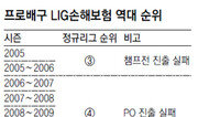 ‘LIG손해보험 미스터리’라 부를 만하다. 24일 남자부 5위 LIG손해보험은 2위 현대캐피탈과의 맞대결에서 2-3으로 졌다. 이날 패배로 LIG손해보험은 사실상 3강 플레이오프 진출이 어려워졌다. 남은 4경기에서 3승 이상을 거둬야 한다. 이번 시즌 직전 많은 감독은 LIG손해보험을 우승후보로 꼽았다. 새로 영입한 외국인 선수 까메호는 다른 외국인 선수보다 뛰어나다고 평가받았다. 까메호와 프로배구 ‘연봉 킹’ 김요한(3억5000만 원), ‘베테랑’ 이경수와 삼각편대를 이루면 최강의 폭발력이 나올 것으로 보였다. 하지만 리그 중반까지 2위를 달리던 LIG손해보험은 후반기에 연패를 거듭하며 5위로 추락했다. 지금껏 LIG손해보험은 ‘시즌 전 우승후보, 전반기 상위권, 후반기 순위 하락’이라는 패턴을 반복해왔다. 2009∼2010시즌 초반만 해도 1위를 달렸지만 정규리그를 4위로 마감하며 3강 플레이오프 진출에 실패했고, 2010∼2011시즌에도 초반엔 2위를 달렸지만 후반기 연패로 정규리그 4위에 그친 뒤 3, 4위가 겨루는 준플레이오프에 진출했으나 삼성화재에 1-2로 패하면서 플레이오프 진출에 실패했다. 매 시즌 우승후보로 꼽혔으면서도 하위권을 맴도는 현상에 대해 배구 관계자들은 ‘LIG손해보험 미스터리’라고 부른다. 전문가들이 보는 원인은 세 가지다. 첫 번째는 장기 계획이 없다. 한 감독은 “LIG손해보험은 그때그때 불을 끄고 보자는 분위기가 강하다”고 말했다. 2∼3년에 걸친 계획으로 팀을 만들어가기보다 선수들을 자주 바꾸며 한 시즌만 노리는 배구를 해왔다는 것이다. 꾸준한 목표가 없다 보니 ‘블로킹=현대캐피탈’ ‘수비=삼성화재’ 등과 비교할 만한 LIG손해보험만의 색깔이 없다. 두 번째는 세터의 부재다. 한 배구 관계자는 “LIG손해보험의 최대 약점은 세터다. 강력한 공격진이 있지만 그 공격을 살려줄 수준급의 세터가 부족했다”고 지적했다. 마지막으로 코칭스태프의 힘이 약하는 점이다. 한 감독은 “감독 등 코칭스태프들이 전권을 쥐고 선수들을 이끌어야 하지만 LIG에서는 선수들의 입김이 강하고 구단마저 선수들의 편을 들어줘 감독들이 어려움을 느낀다”고 말했다. 김동욱 기자 creating@donga.com}