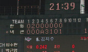 “목동구장 전광판에 알파벳이 나타나지 않았으면 좋겠다.” 2011년 프로야구 넥센을 이끌던 김시진 당시 감독은 한숨을 쉬며 이렇게 말했다. 넥센이 안방 구장으로 쓰는 목동은 전광판이 오래돼 두 자릿수를 넘기면 숫자 대신 알파벳을 표시한다. 10이면 A, 11이면 B로 쓰는 식이다. 김 감독이 알파벳을 싫어했던 건 넥센 투수진이 볼넷을 남발해 사사구를 표시하는 자리에 알파벳이 뜨는 일이 잦았기 때문이다. 하지만 4일 경기에서 나온 알파벳이라면 김 감독도 반기지 않았을까. 넥센 타자들은 이날 안방 한화 경기에서 4회말 공격 때 전광판에 A를 찍었다(사진). 한 이닝에 10점을 따낸 것. 2008년 넥센이 목동을 안방 구장으로 쓰기 시작한 뒤 8684이닝 만에 처음이다. 이 경기 전까지 넥센은 물론이고 방문 팀도 한 이닝에 10점 이상을 기록하지 못했었다.황규인 기자 kini@donga.com}