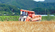 충북 옥천군 안남면 종미리의 들녘에서 한 농부가 황금빛으로 물든 보리를 수확하고 있다. 20년째 보리농사를 짓고 있는 박용우 씨(65)는 “지난해 10월 파종한 겉보리가 고온으로 예년보다 일찍 익었다”며 “수확량은 6t 정도 될 것으로 예상한다”고 말했다. 이 지역에서는 15개 농가가 10ha의 밭에서 한 해 40t가량의 보리를 생산하고 있다. 옥천군 제공}
