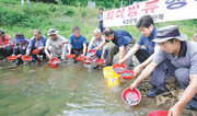 충북 옥천군이 대청호와 금강의 은어(銀魚) 복원을 위해 나섰다. 15일 옥천군에 따르면 군청 직원과 지역 어민들은 13일 오후 금강 상류인 동이면 청마교 부근에서 은어 치어 15만8000여 마리를 풀어 넣었다. 이날 새끼 은어 방류는 3년여 만에 이뤄졌다. 방류된 새끼 은어들은 전남 광양 섬진강변의 한 양어장에서 인공부화해 키운 6∼7cm 크기의 새끼들이다. 9, 10월이면 알을 낳을 수 있다. 은어는 바다와 강을 오가는 회귀성 어종으로 동해와 남해에 맞닿은 강과 하천에 주로 산다. 섬진강과 낙동강, 남대천 등이 주요 서식지. 충북도내수면연구소는 1997년 옥천군 청성면 대청호에 300만 개의 은어 수정란을 풀어 넣었다. 이 가운데 일부가 살아남은 뒤 금강유역에 정착했다. 회귀 습성을 잃고 대청호에 정착(육봉화·陸封化)한 것. 수정란에서 부화한 치어는 12월 초 대청호에서 겨울을 지낸 뒤 이듬해 봄 금강으로 거슬러 올라간다. 이들 은어가 2004년부터 대청호와 금강 유역에서 조금씩 잡히기 시작하더니 이듬해부터 개체 수가 급격히 늘어났다. 옥천읍내를 가로지르는 금구천에서도 20cm 길이의 은어가 떼를 지어 헤엄치는 모습이 발견될 정도였다. 금강 수계인 청성면 일대에서도 대량 서식이 확인됐다. 이후 충북도와 옥천군은 이 일대를 전국 최대 은어 특산단지로 만들기 위해 해마다 은어 수정란과 치어를 풀어 넣었다. 그러나 4, 5년 전 은어 산란철에 큰비가 내리면서 은어 산란장이 무너지고 주요 먹이인 이끼류가 부족해지면서 개체 수가 줄어들기 시작했다. 옥천군은 대청댐 주변 지역 지원사업비 2500만 원을 들여 3년 만에 은어 복원사업을 재개했다. 옥천군 관계자는 “내수면 어족자원 활성화와 어민들의 소득 증대를 위해 치어 방류, 수정란 이식 등의 사업을 지속적으로 펼칠 계획”이라고 말했다. 은어는 9, 10월 부화한 뒤 바다에 내려가 겨울을 나고 이듬해 봄 다시 자신이 태어난 하천으로 돌아온다. 맛이 담백하고 특유의 수박향을 지닌 고급 어종으로 25∼30cm 크기로 자란다.장기우 기자 straw825@donga.com}